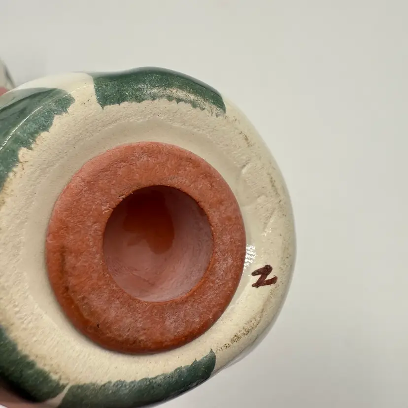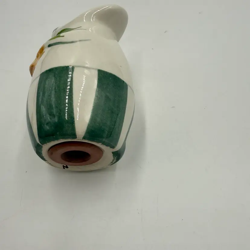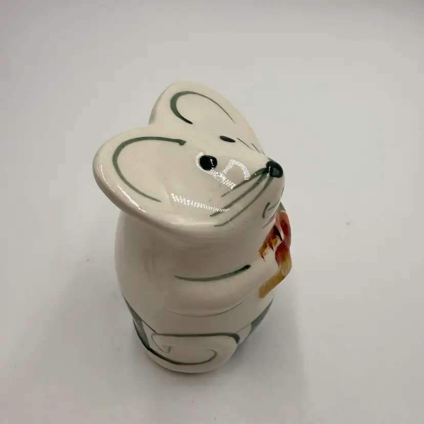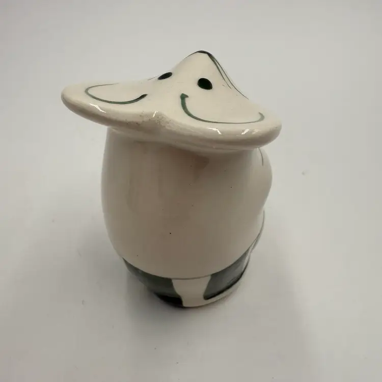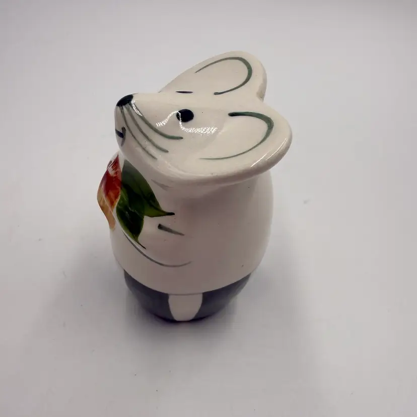 In good condition. Does not have any chips or cracks. Both have their rubber stoppers. Measures 3 3/4 inches tall and 2 3/4 inches long from ear to ear.