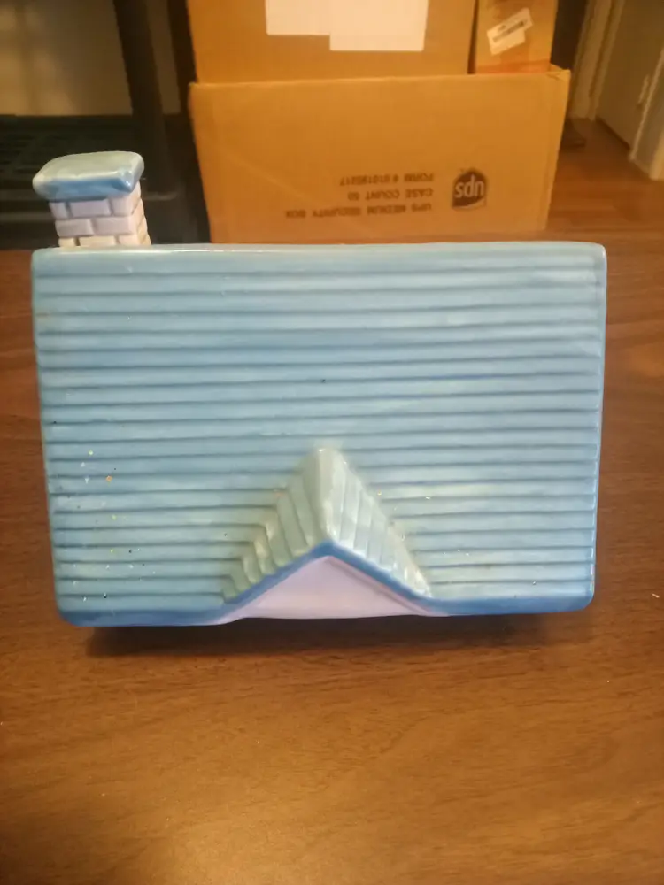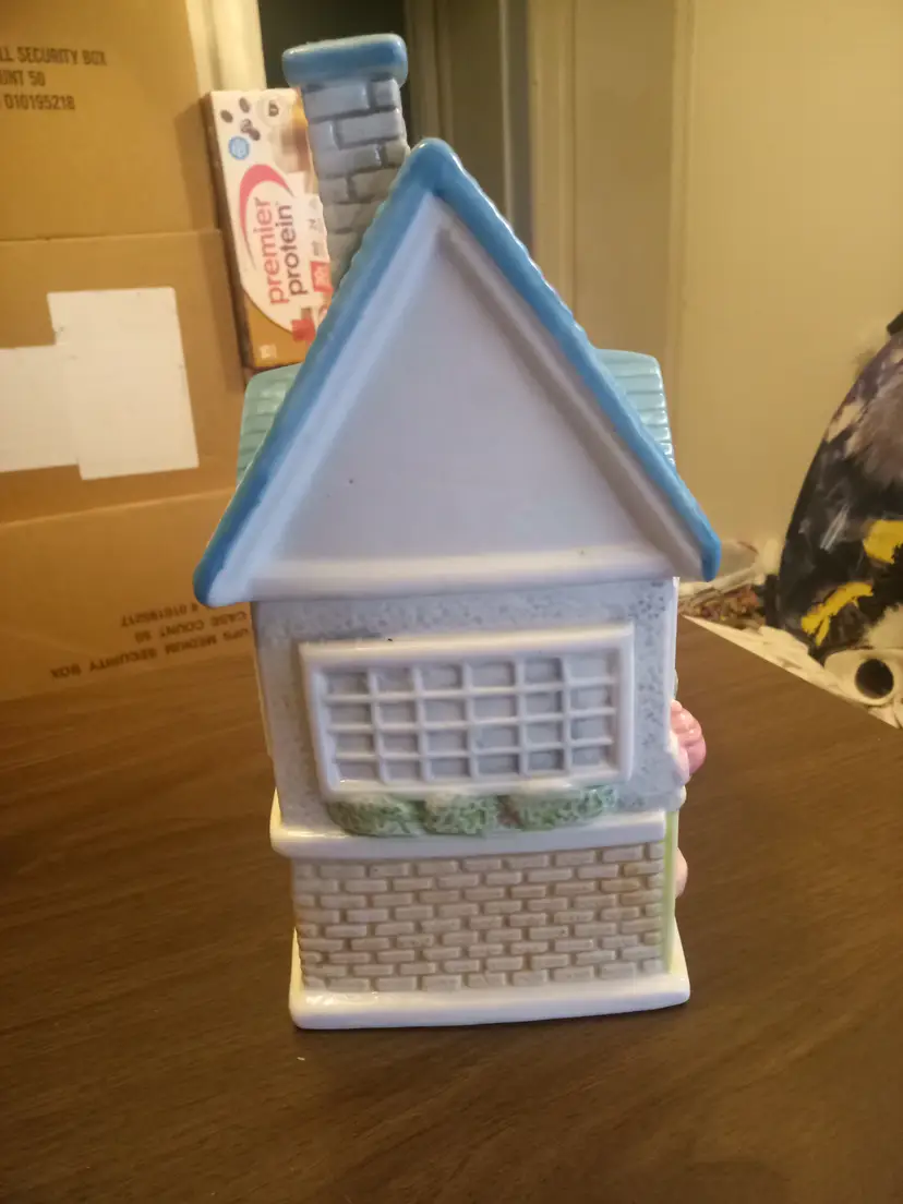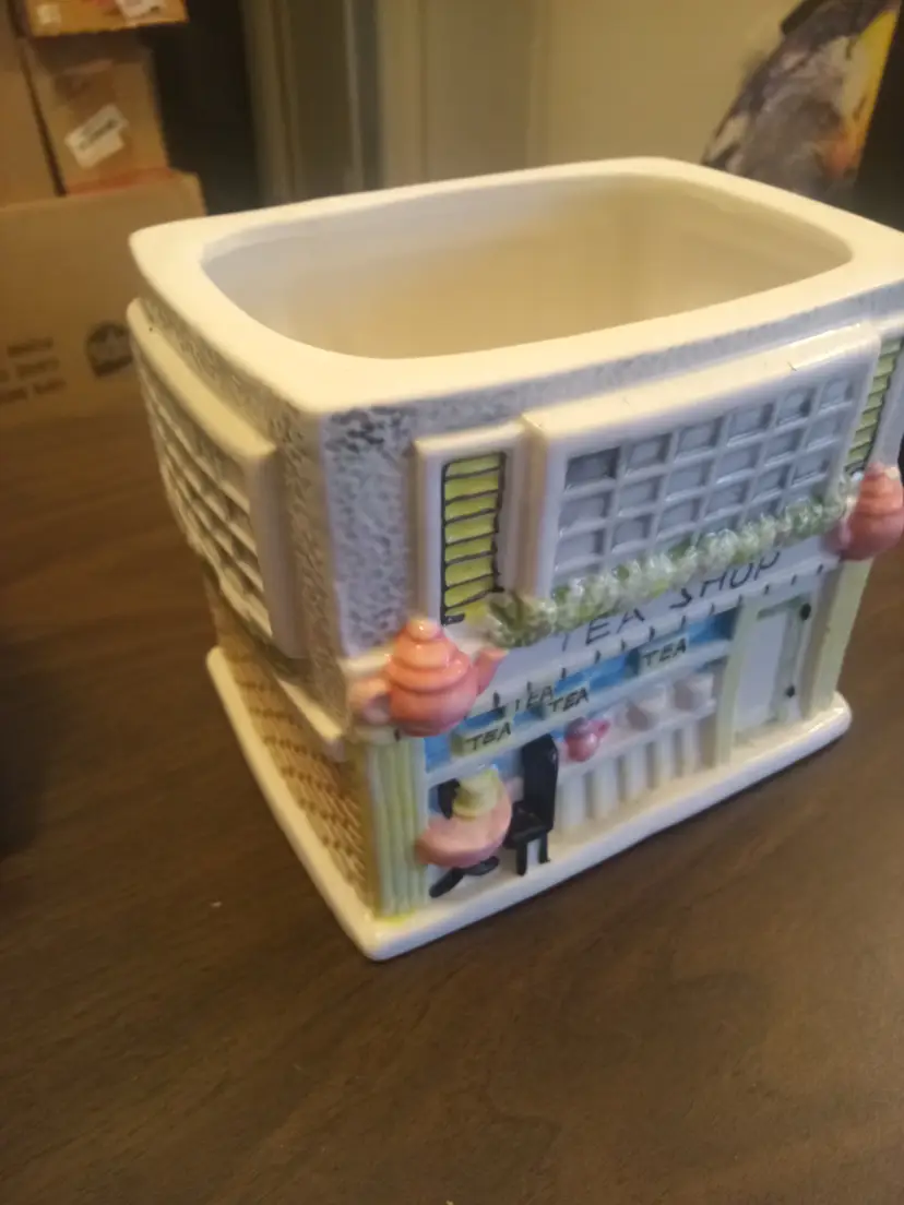 A Vintage Ceramic Tea shop cookie jar. 10in by 6in depth 4 1/2 ins