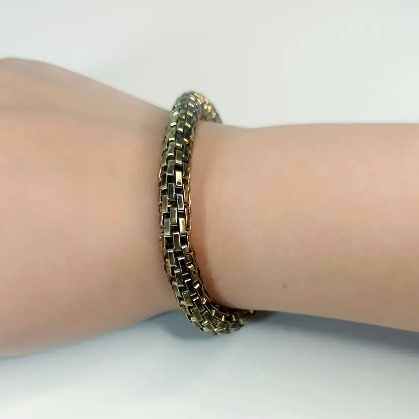 Vintage Chainmail Bracelet Gold tone Stretch Link Costume Jewelry. Condition is preowned. No makers mark. (FC03)