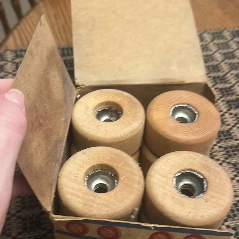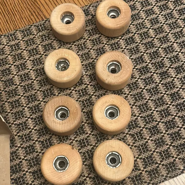 Vintage Chicago Rollerskate Wooden Wheels With Box Set Of 8. NOS