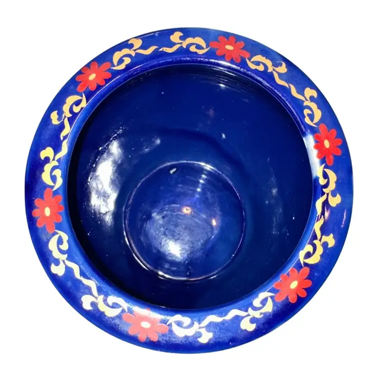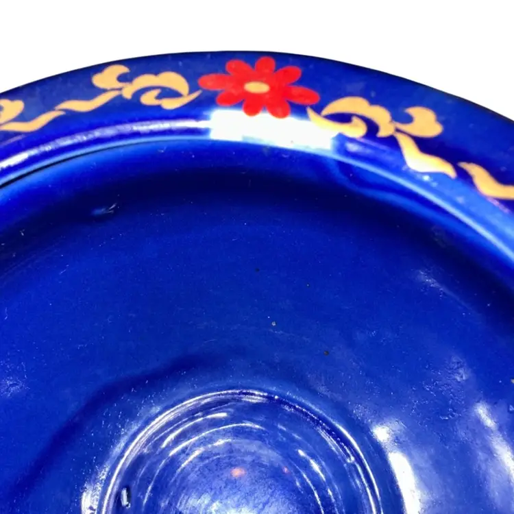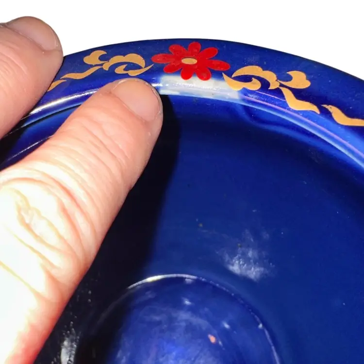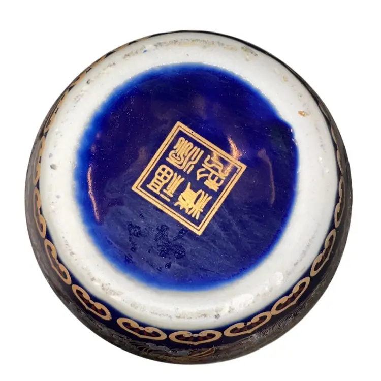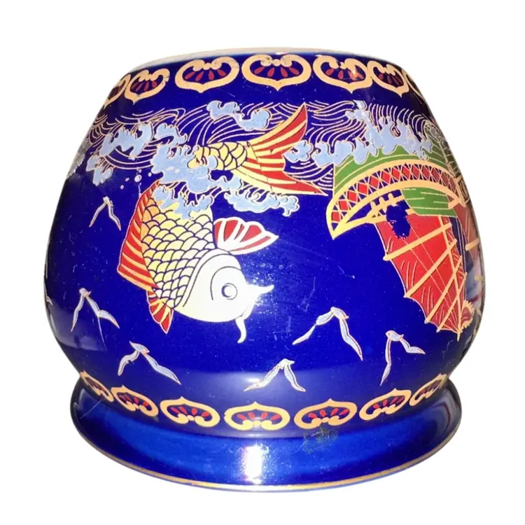 Vintage Chinese Satsuma-Style Porcelain Planter - Bowl Fish Ships Birds “As is” 3 3/4”T X 5”Diam. 1” x 1/4” white area (unglazed) along inside rim
