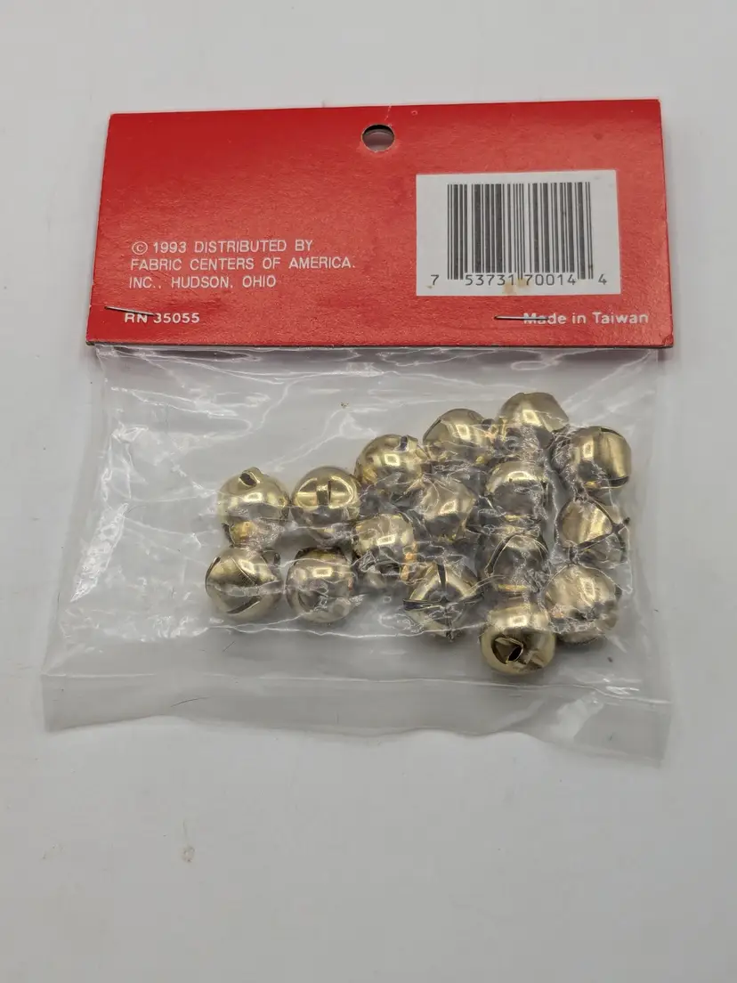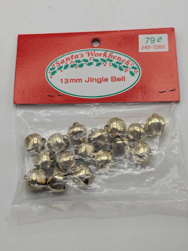 1 package Santa's Workbench gold tone jingle bells 13mm 16 per package.