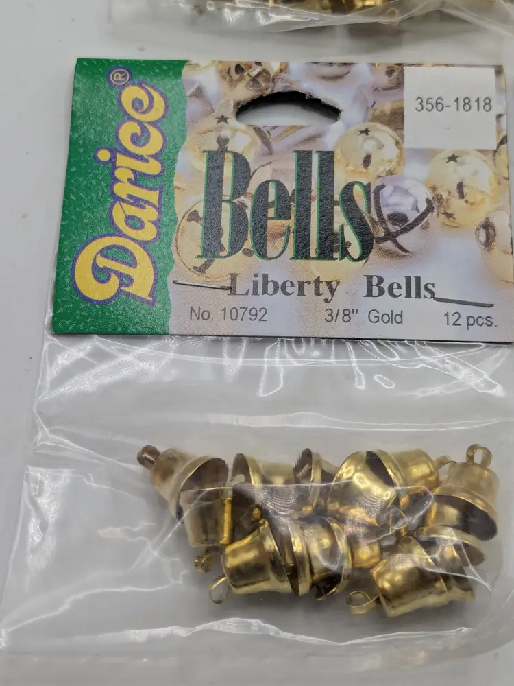 6 packages Darice gold tone "liberty" bells, 3/8" 12 pieces per package.