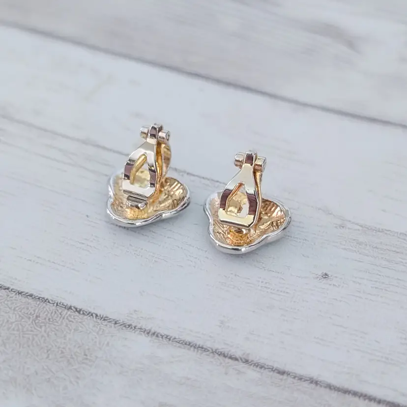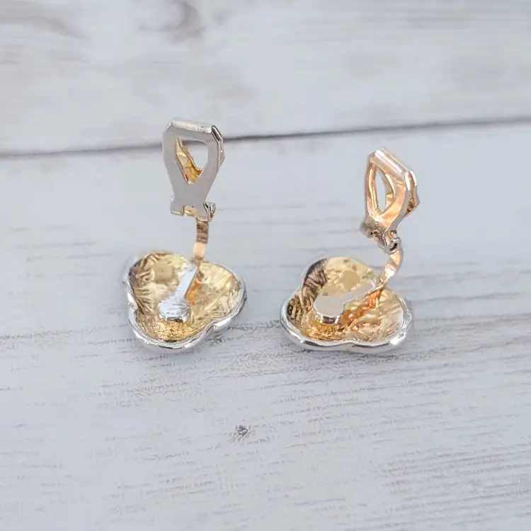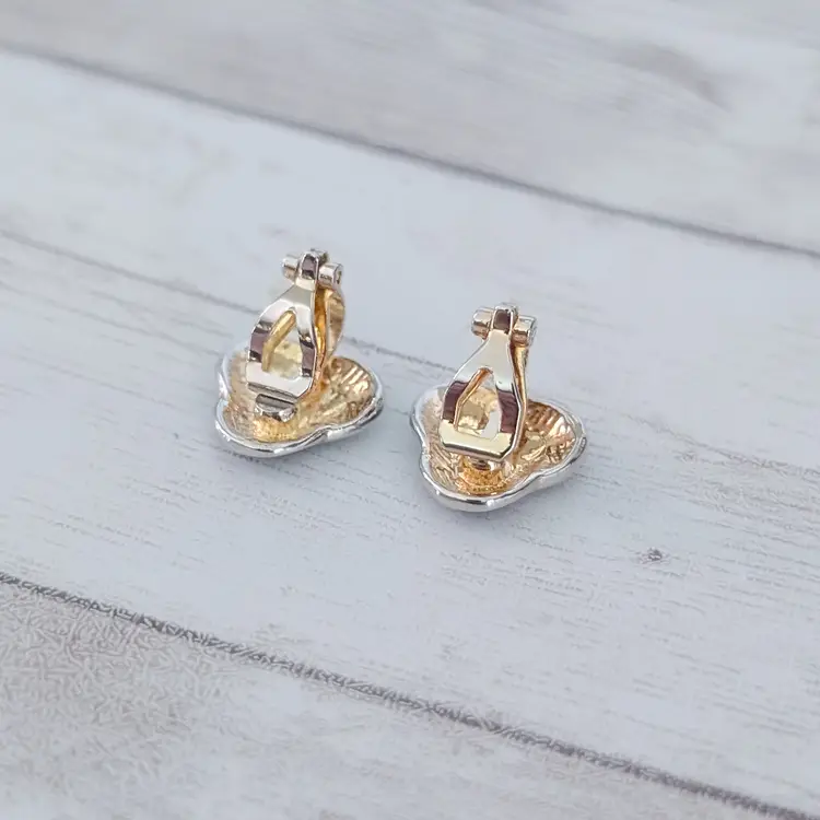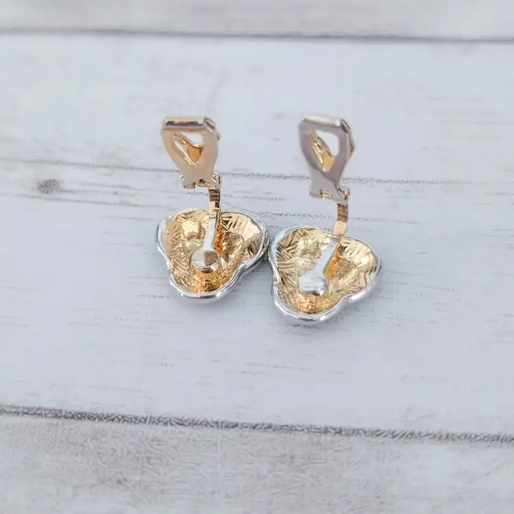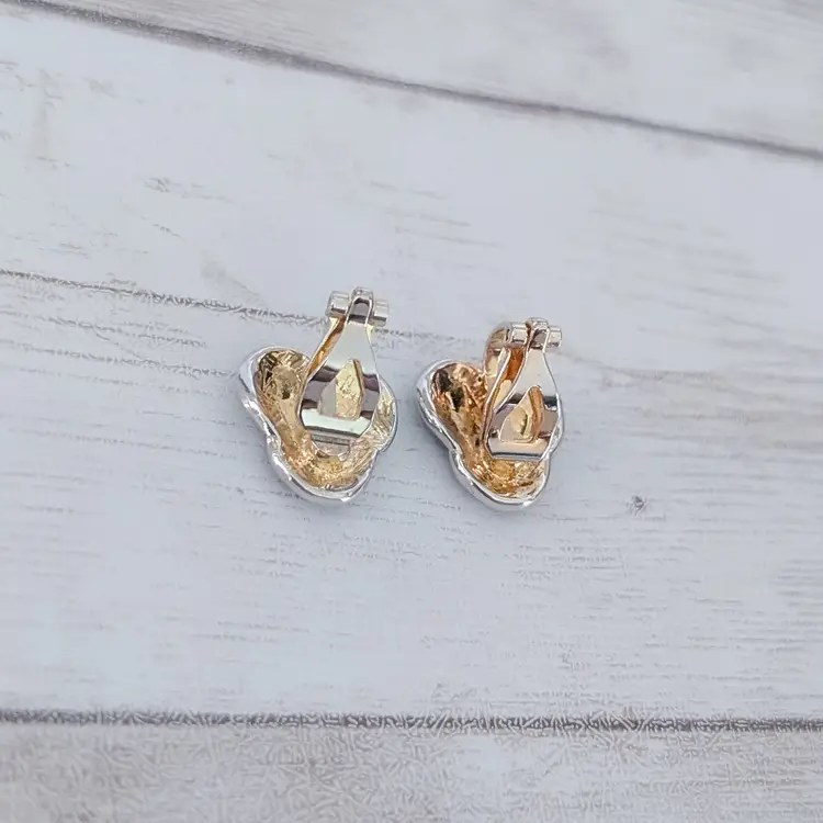 Preowned vintage earrings, sold as shown - I am unsure of material type(s) because of this. Pictures show different angles for you to review - while I attempt to note any defects, some tarnish/signs of wear may be visible that are not otherwise stated.