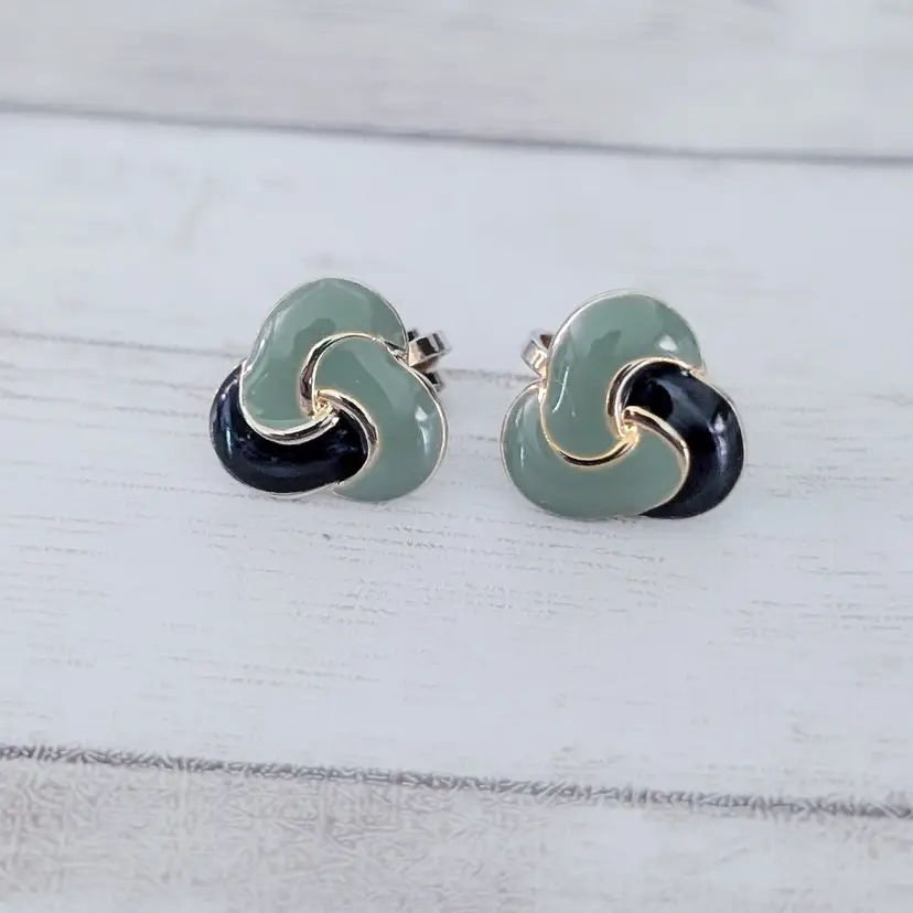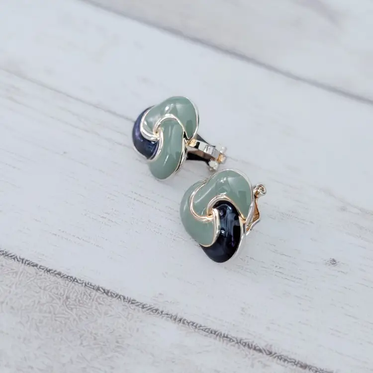 Vintage Clip On Earrings 0.25" Dainty Muted Green & Dark Blue Classy