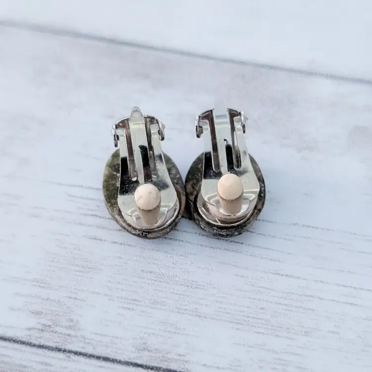 Preowned vintage earrings, sold as shown - I am unsure of material type(s) because of this. Pictures show different angles for you to review - while I attempt to note any defects, some tarnish/signs of wear may be visible that are not otherwise stated.