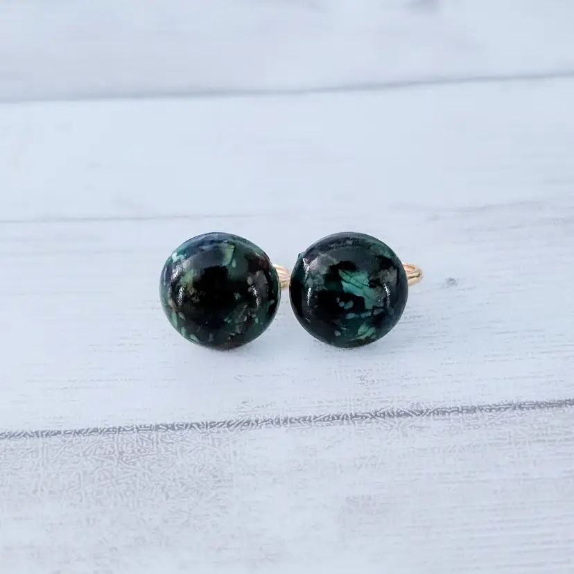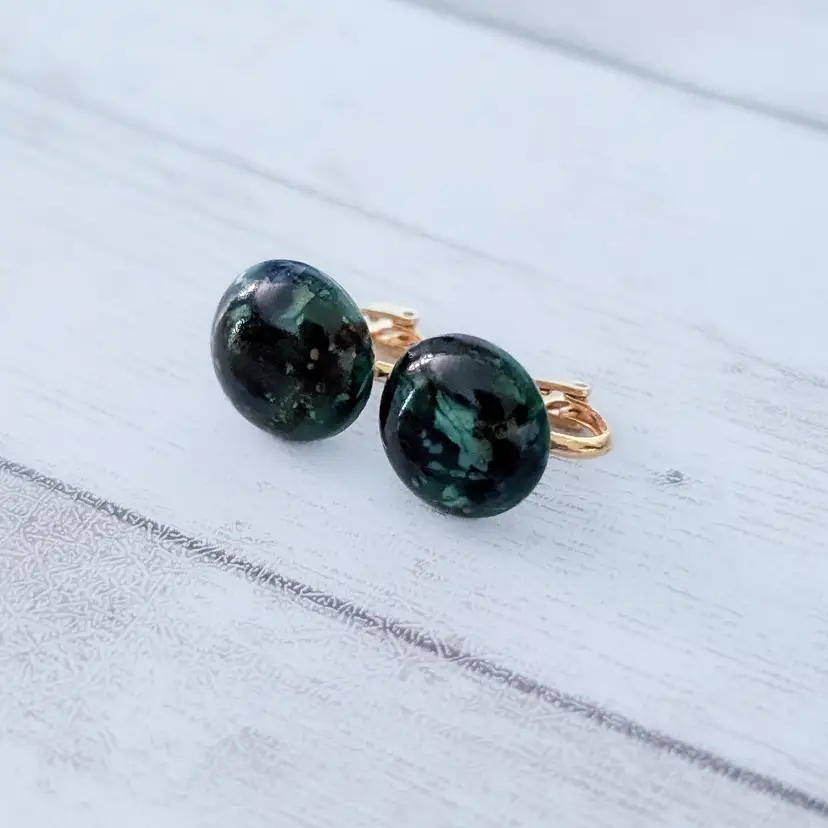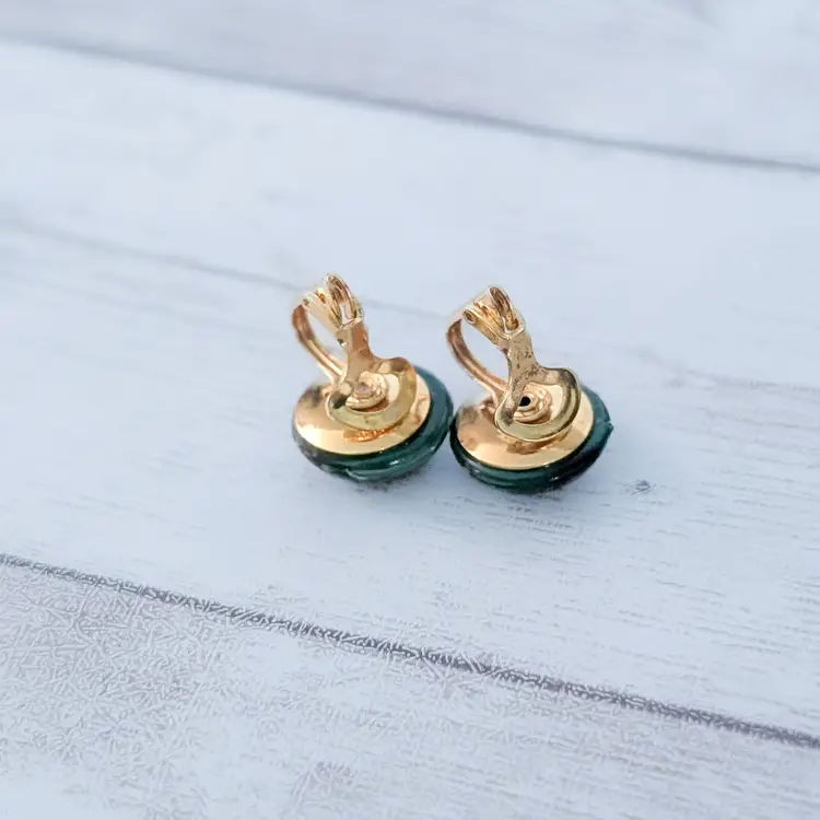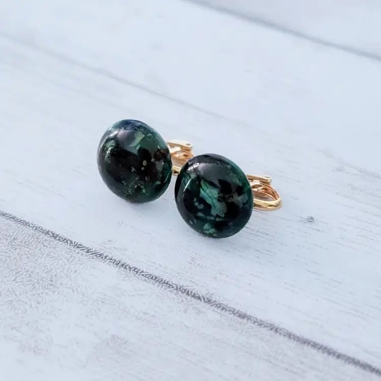 Vintage Clip On Earrings Green Tones 0.5" Dainty
