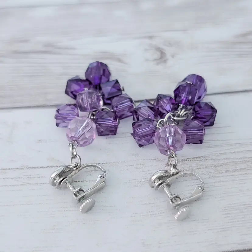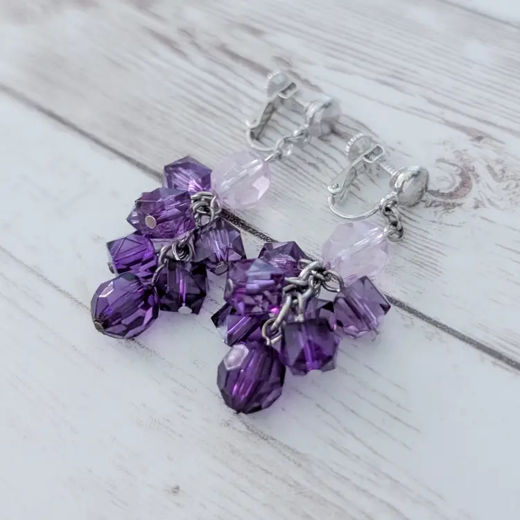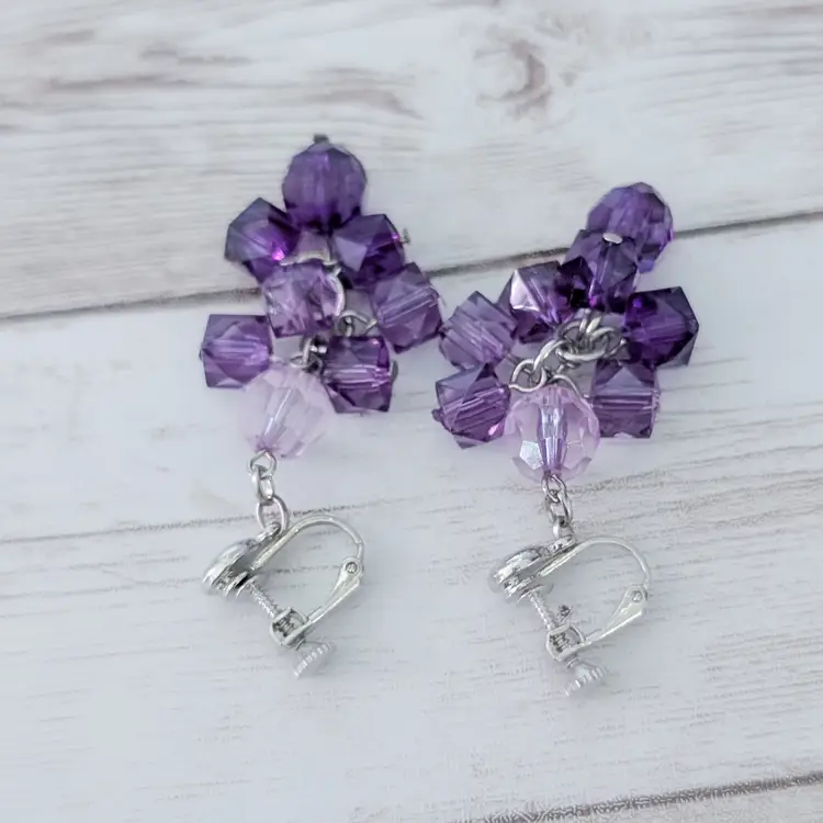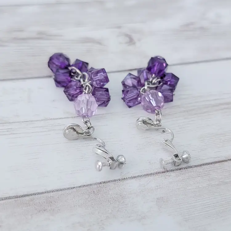 Vintage Clip On Earrings Stunning Extra Long Purple Dangle Statement
