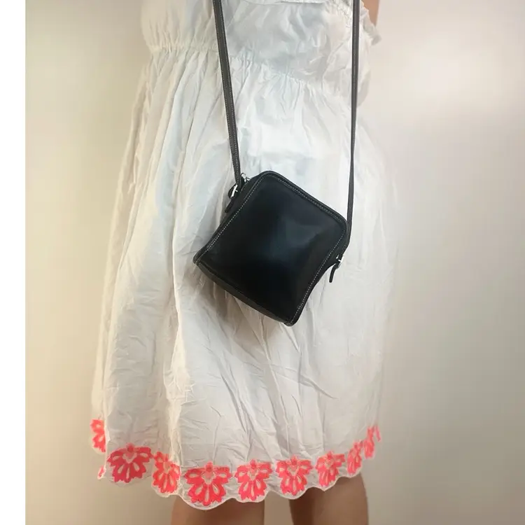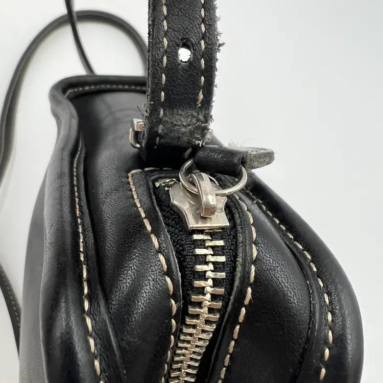Vintage Coach Bellini Zip Bag Black Leather Purse Size 6 x 6 x 2.5" Preowned item in excellent overall condition. Small spot of wear on the strap where the zipper head meets it. Does not fit large smart phones. On interior slip pocket. Comes with adjustable & detachable crossbody strap.