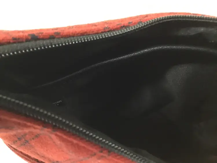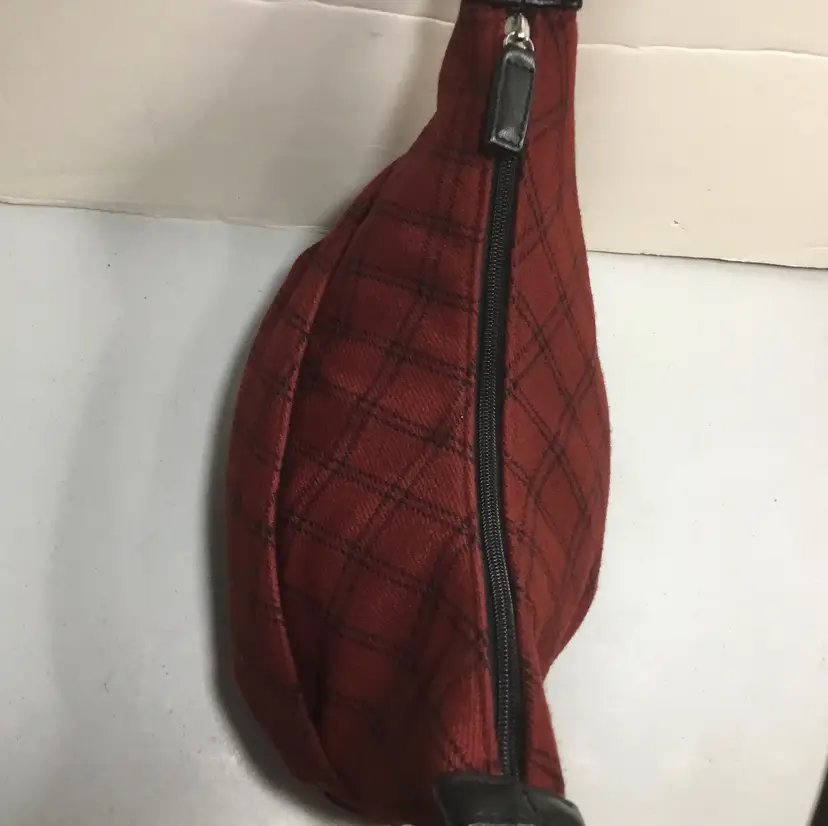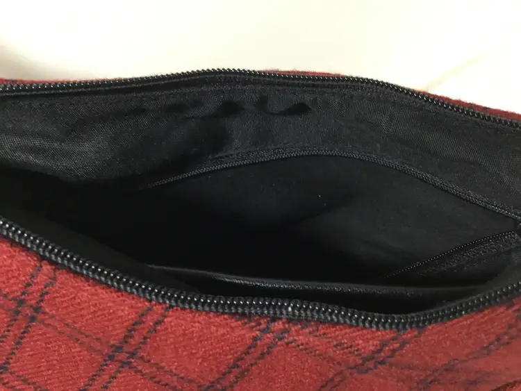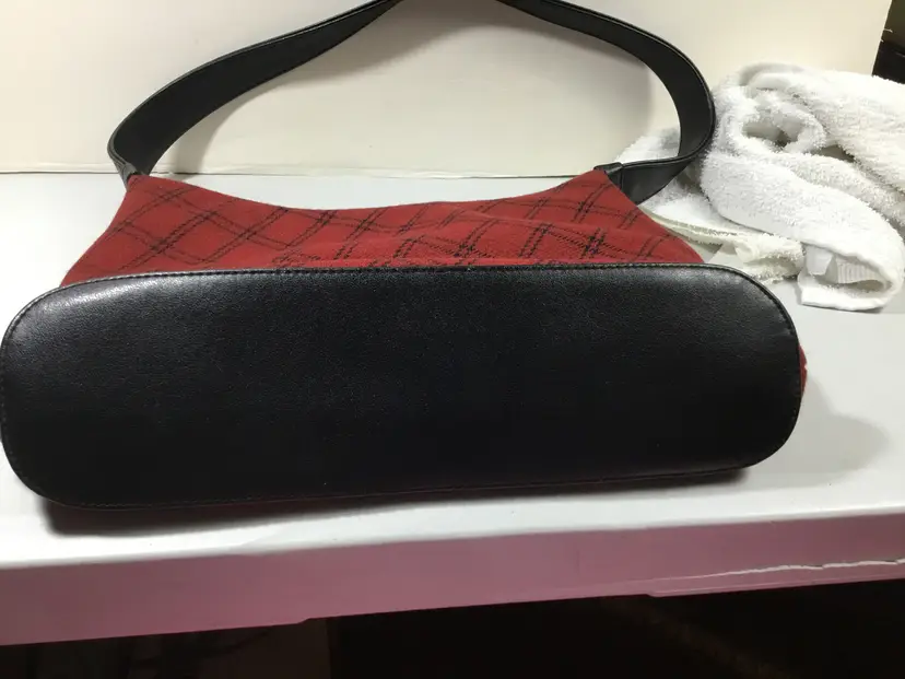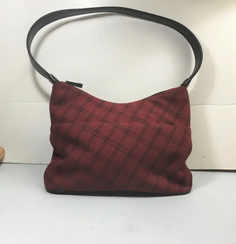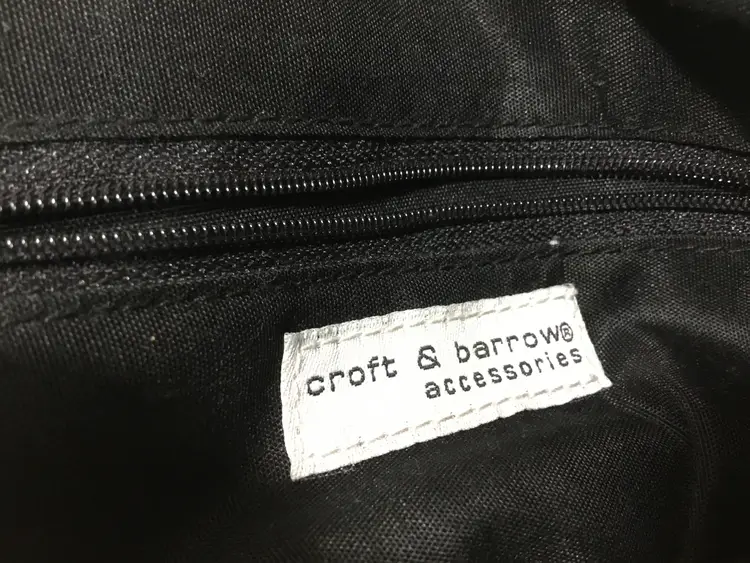 Croft and Barrow, medium shoulder bag, 11 inches wide, 8 inches high, 3 inches front to back. Has one open outside pocket, has zipper top closure for 2 inner compartments. Includes small zippered pocket inside. Fabrics are sturdy and in great shape both inside and outside. Strap is also in great shape, feels like real leather.
