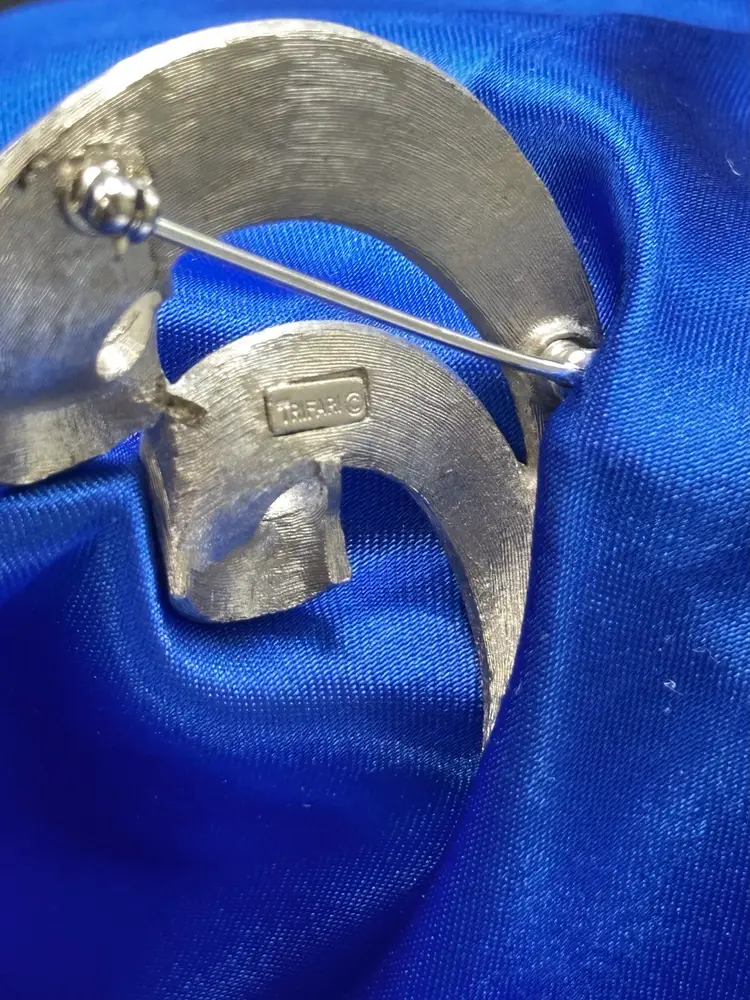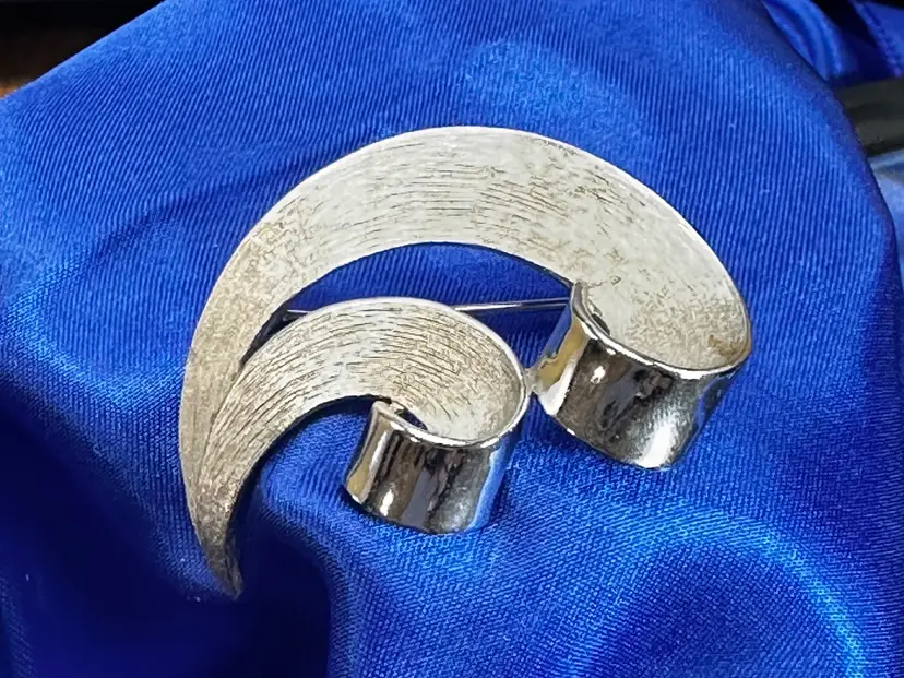 Vintage Crown Trifari Brushed Silver Tone Swirl Curl Ribbon Brooch As shown and described in pictures Flat Rate Combined $5 Shipping