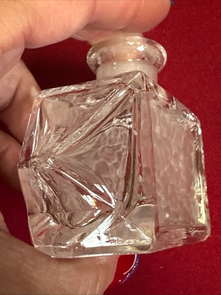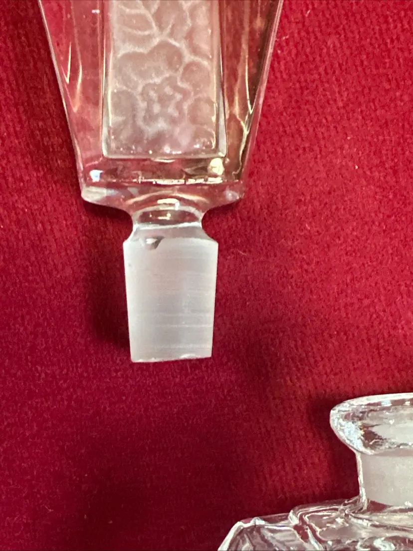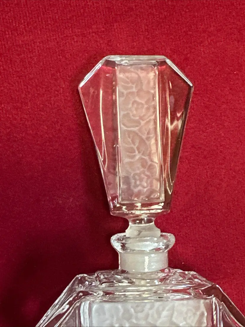 Vintage Crystal Clear Frosted Flower Paneled Glass 6” Perfume Bottle w/Stopper