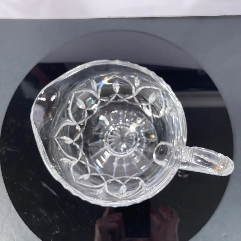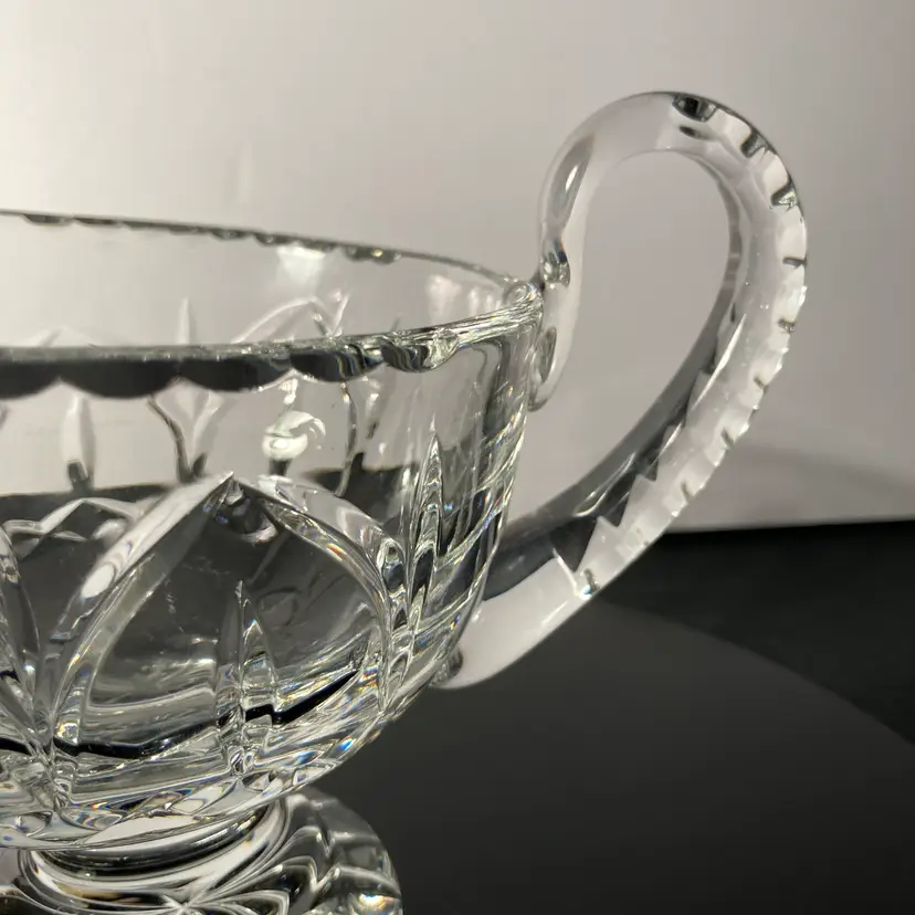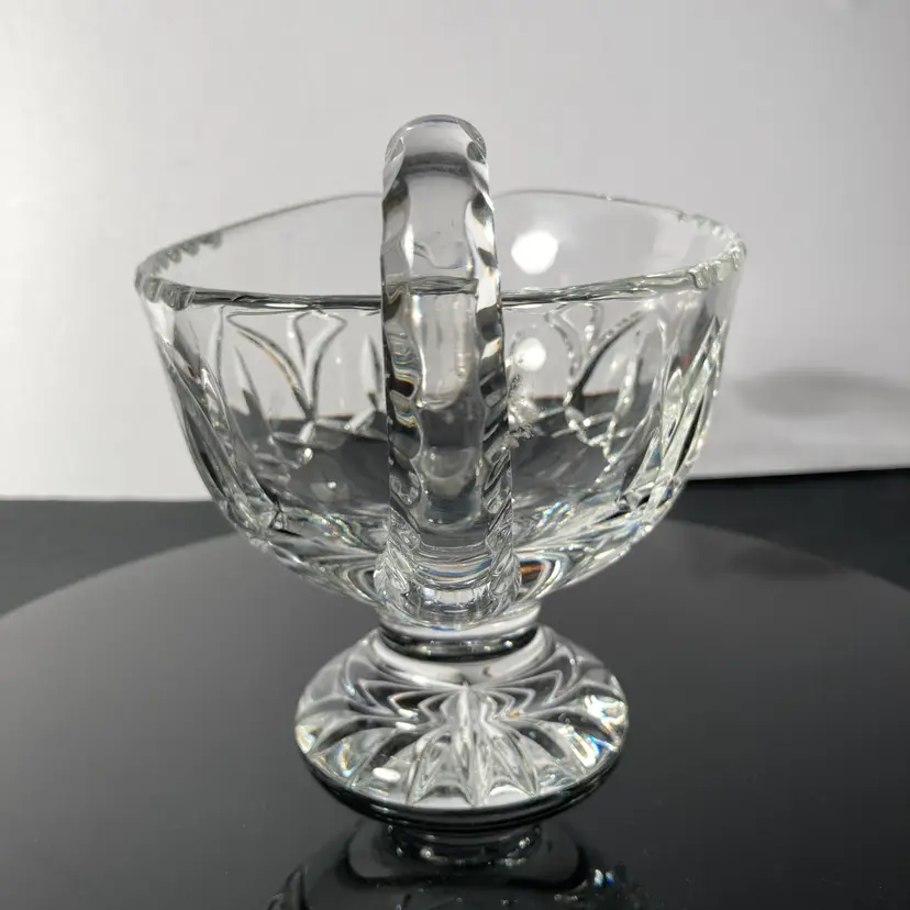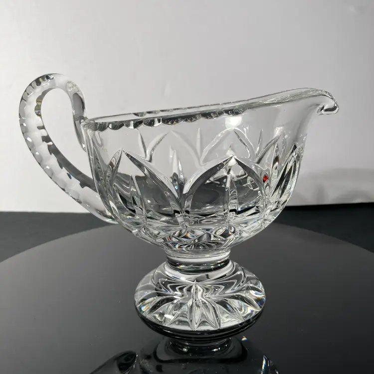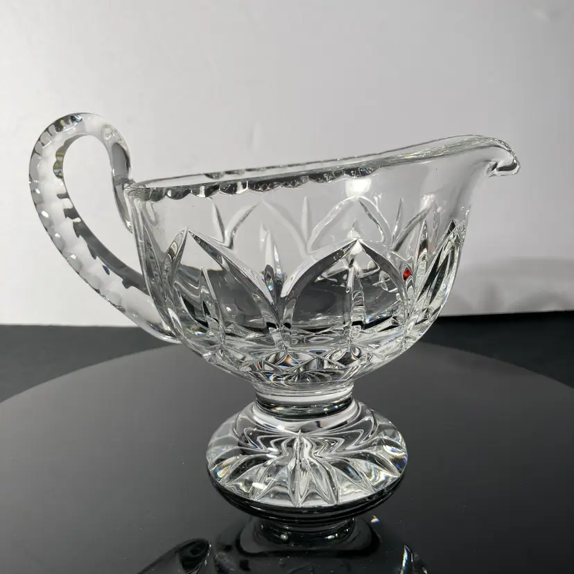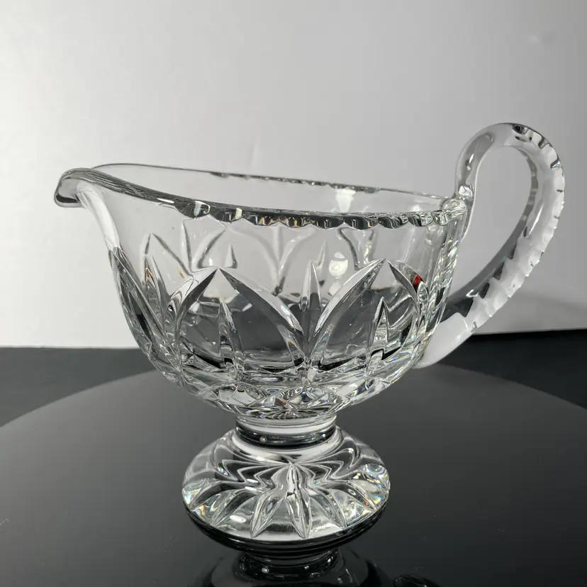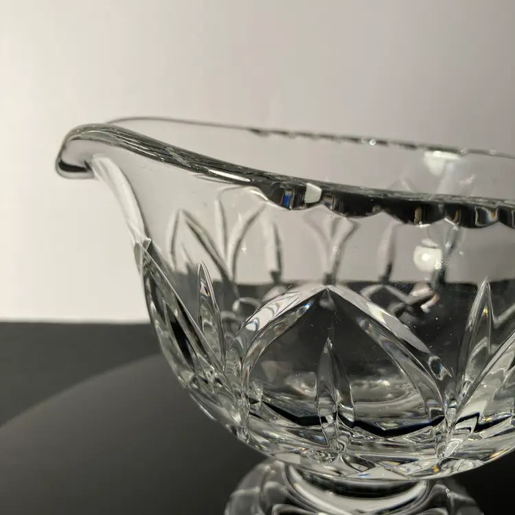 Elegant Vintage lead crystal sauceboat with light-reflecting facets. Pedestal base, faceted handle. This sauce boat would be perfect for Holiday table service!