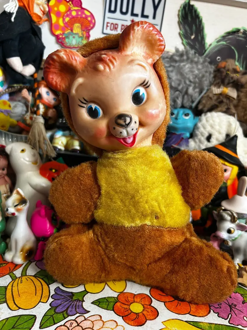 For Sale! Vintage Cute Brown Rubber Face Bear. No maker. Good vintage condition. 9 inches tall.