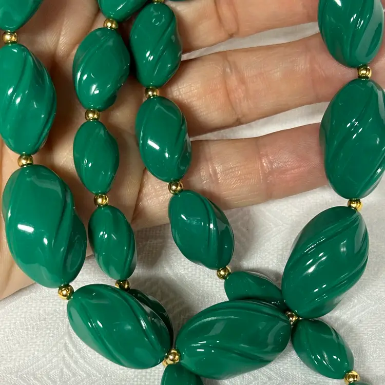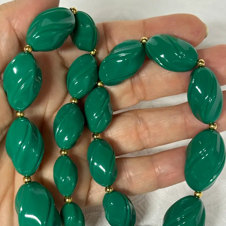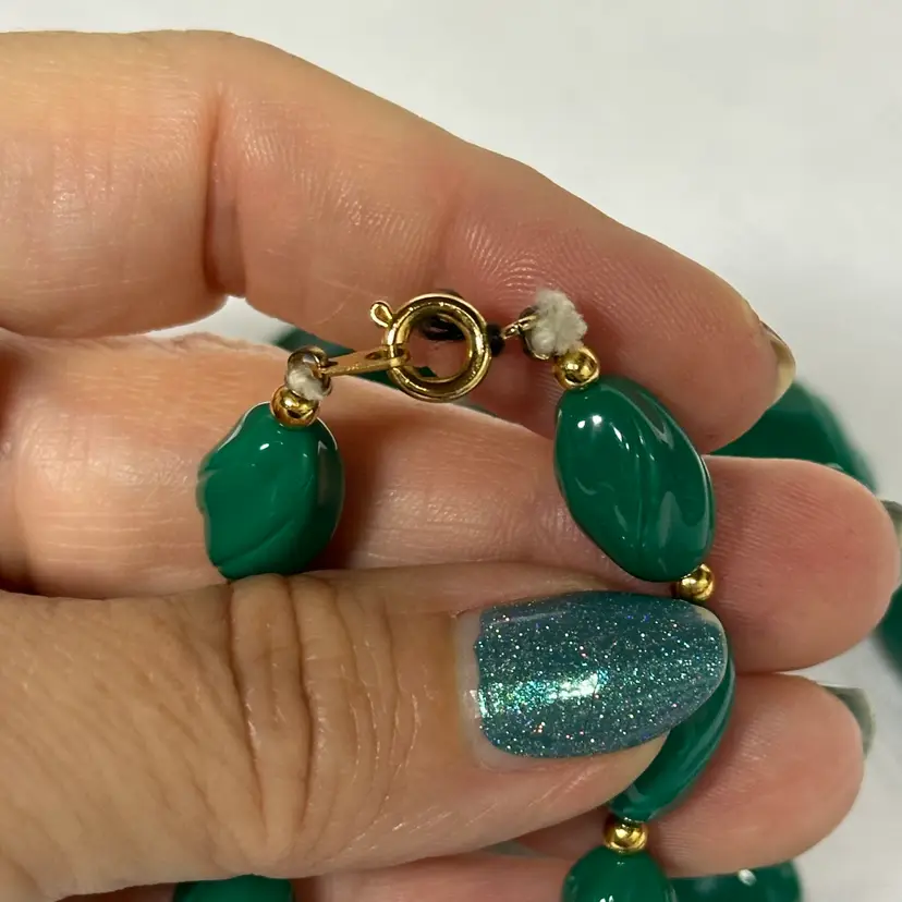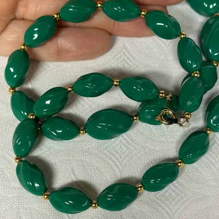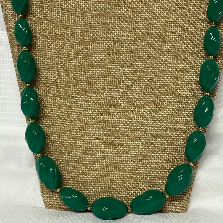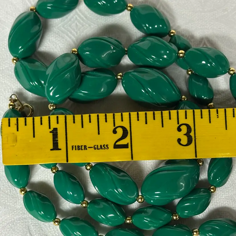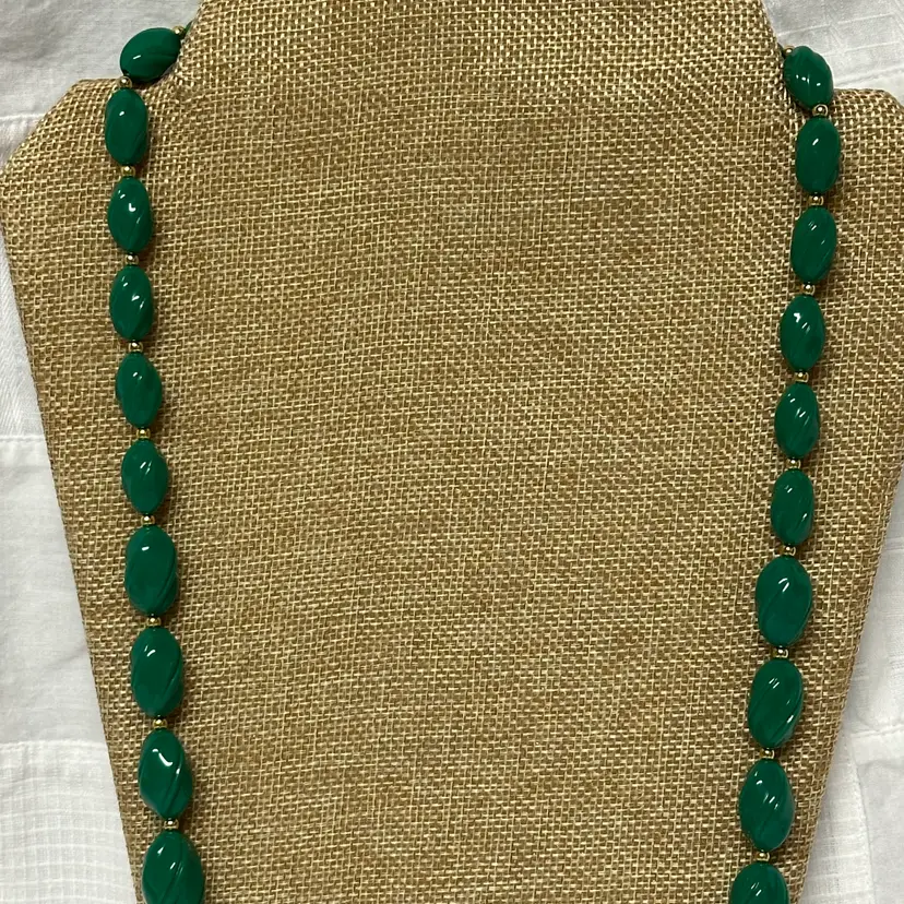 This is gorgeous! The beads are a beautiful color. Beads start smaller, and increase to a larger bead at bottom. Very nice condition. 30”