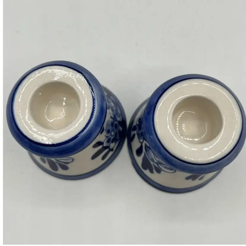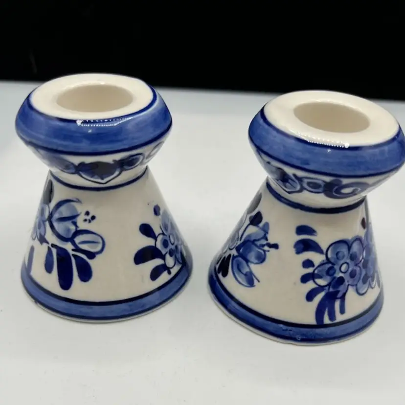 VINTAGE DELFT BLUE WINDMILL HAND PAINTED CERAMIC TAPER CANDLESTICK HOLDERS. THEY ARE IN PERFECT CONDITION.