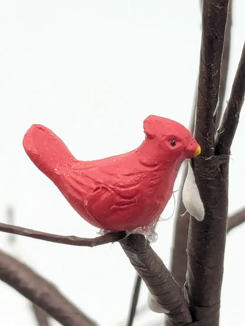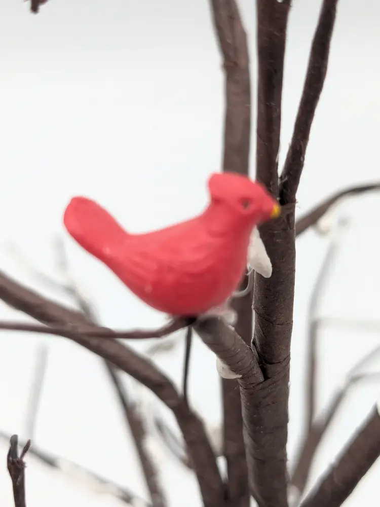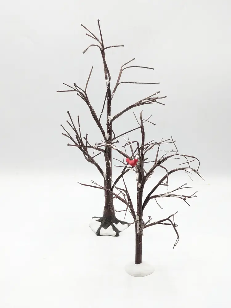 Good condition. Two trees. Small tree has a cardinal and is 9" in height. Taller tree is 11 1/2" in height. ENS