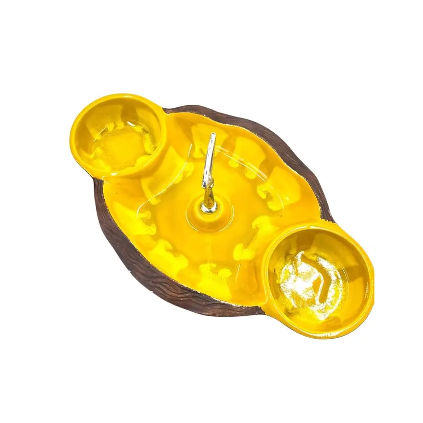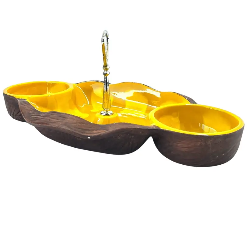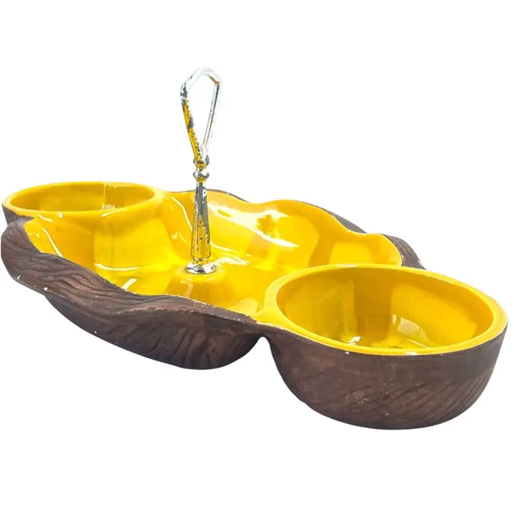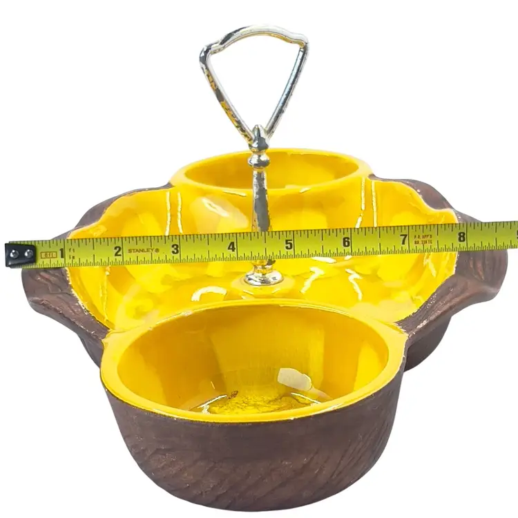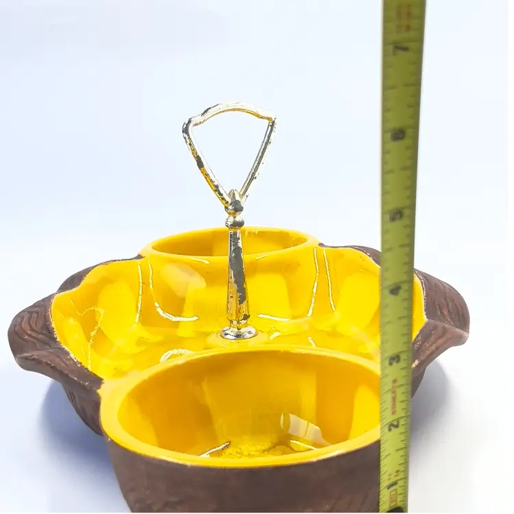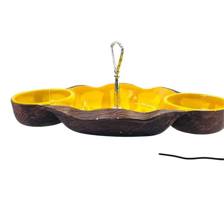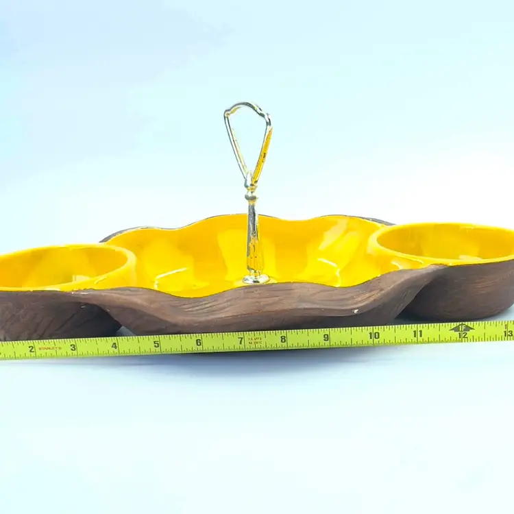π 14x9x2β Appetizer Serving Dish with Handle π Yellow Drip Glaze with Faux Wood Bottom π Paint wear as Seen in Photos πNo Chips or Cracks π Review Photos for Best Condition Description πSold as Shown