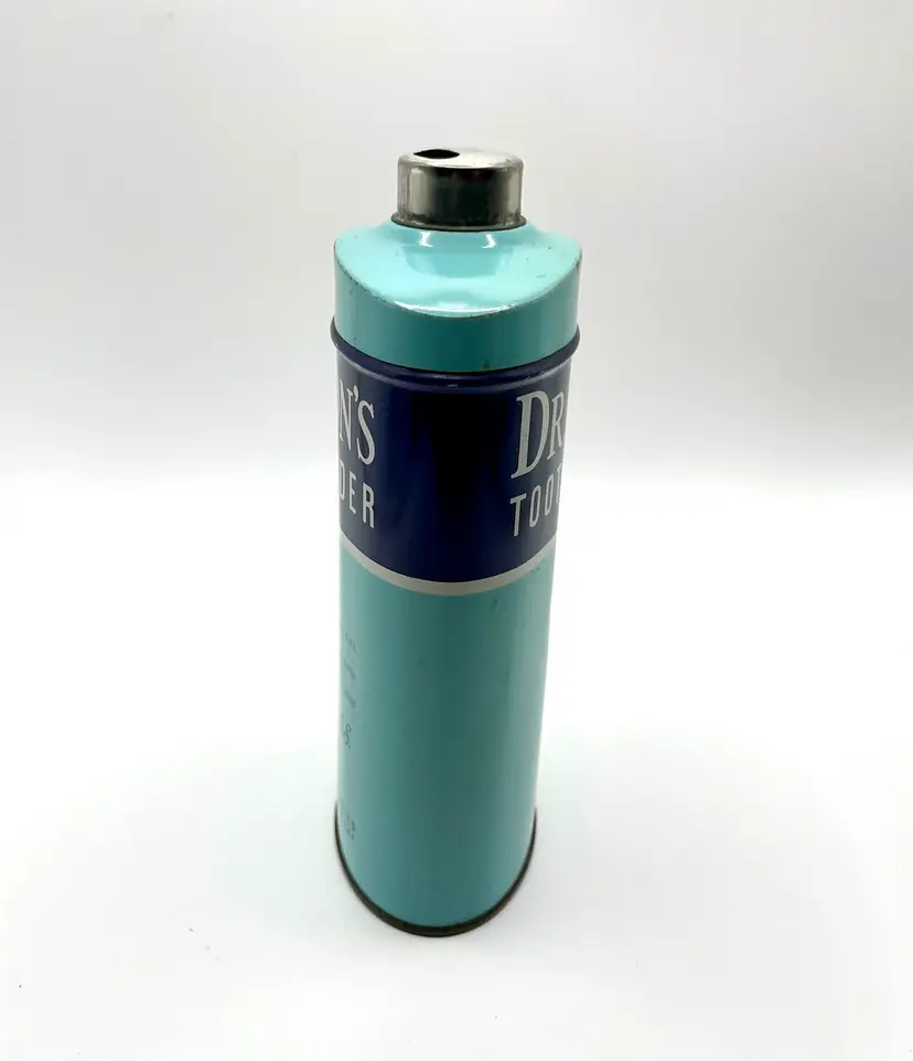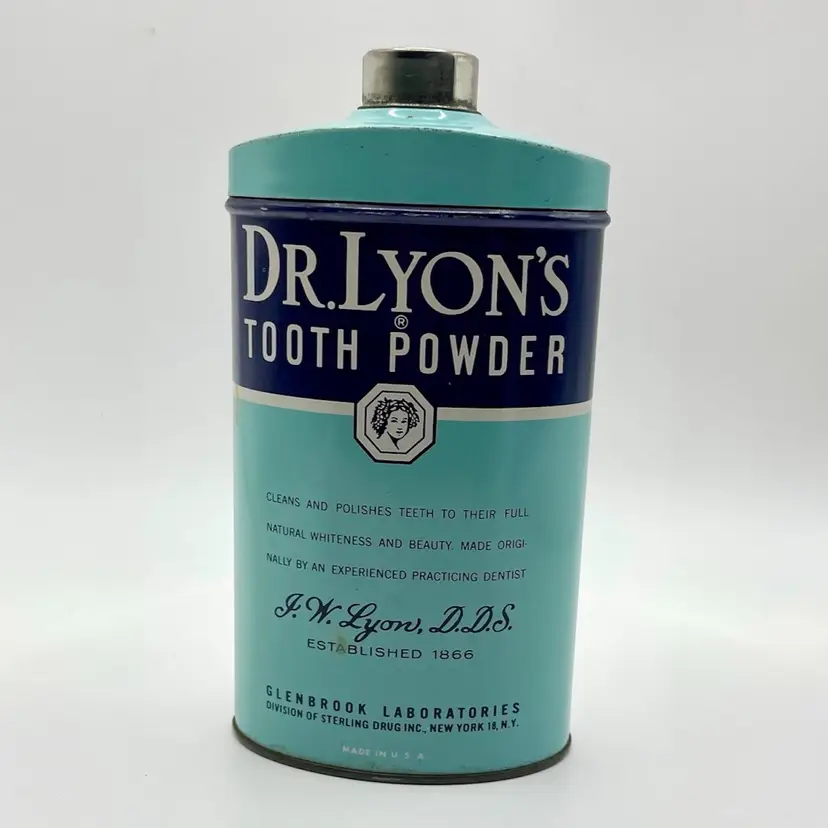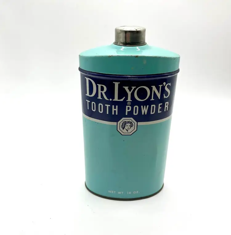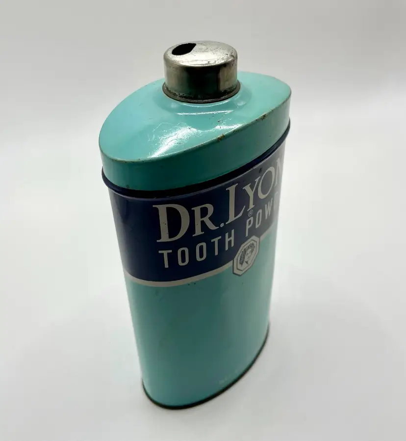 This vintage Dr Lyons Tooth Powder tin is a unique piece of bathroom decor, featuring a large size of 10oz and showcasing advertising for dental hygiene. Made in the United States, this tin is a collectible item that adds a touch of nostalgia to any space. The blue color adds a vintage charm to the overall aesthetic, making it a desirable piece for collectors of advertising merchandise and memorabilia.