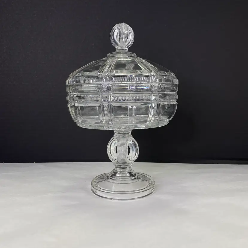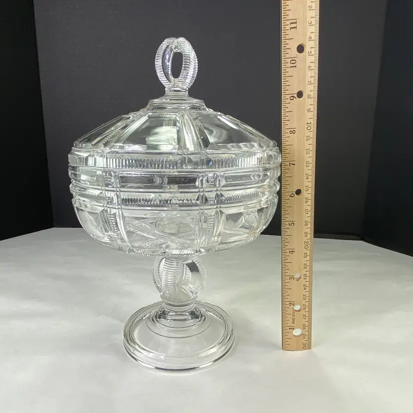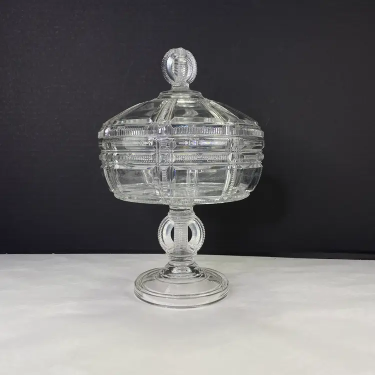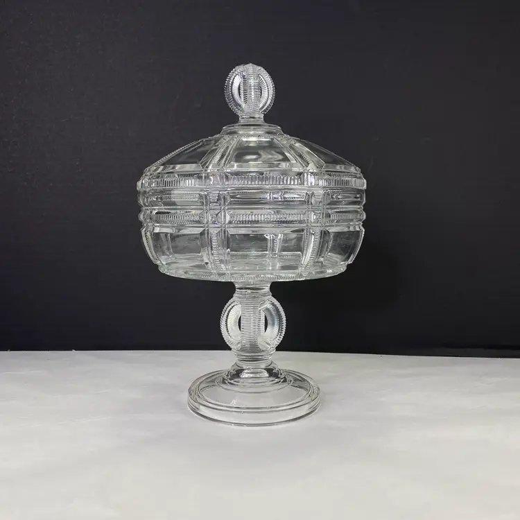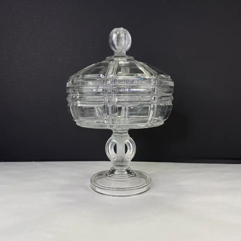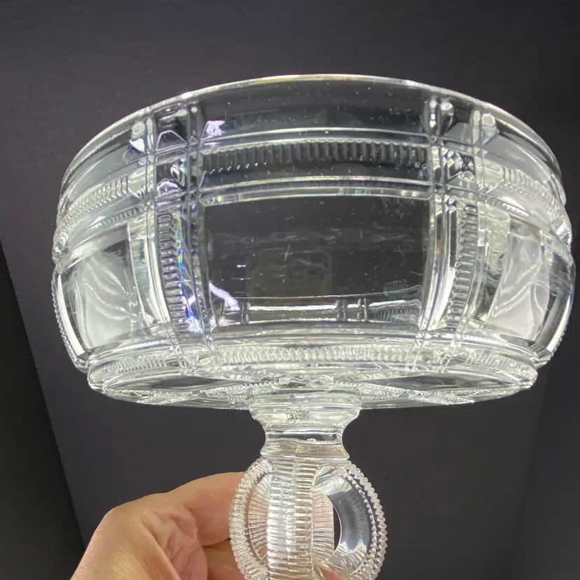 Vintage Duncan & Sons Cryptic Zipper Block Pedestal Compote