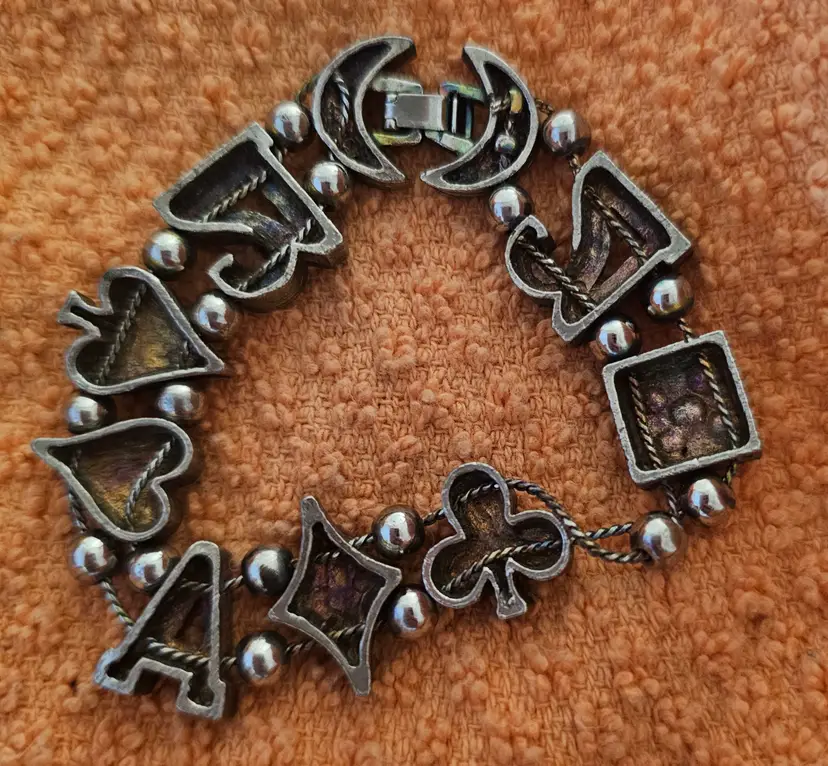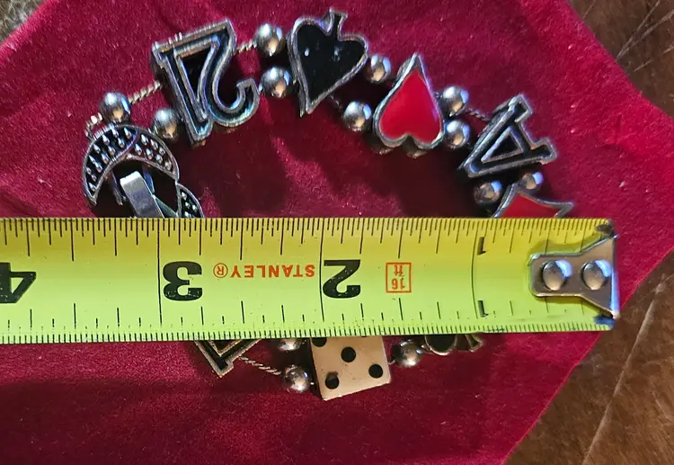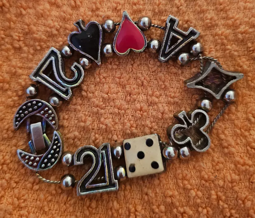 Vintage Enamel Slide Charm Bracelet • Blackjack • Dice • Deck Of Cards