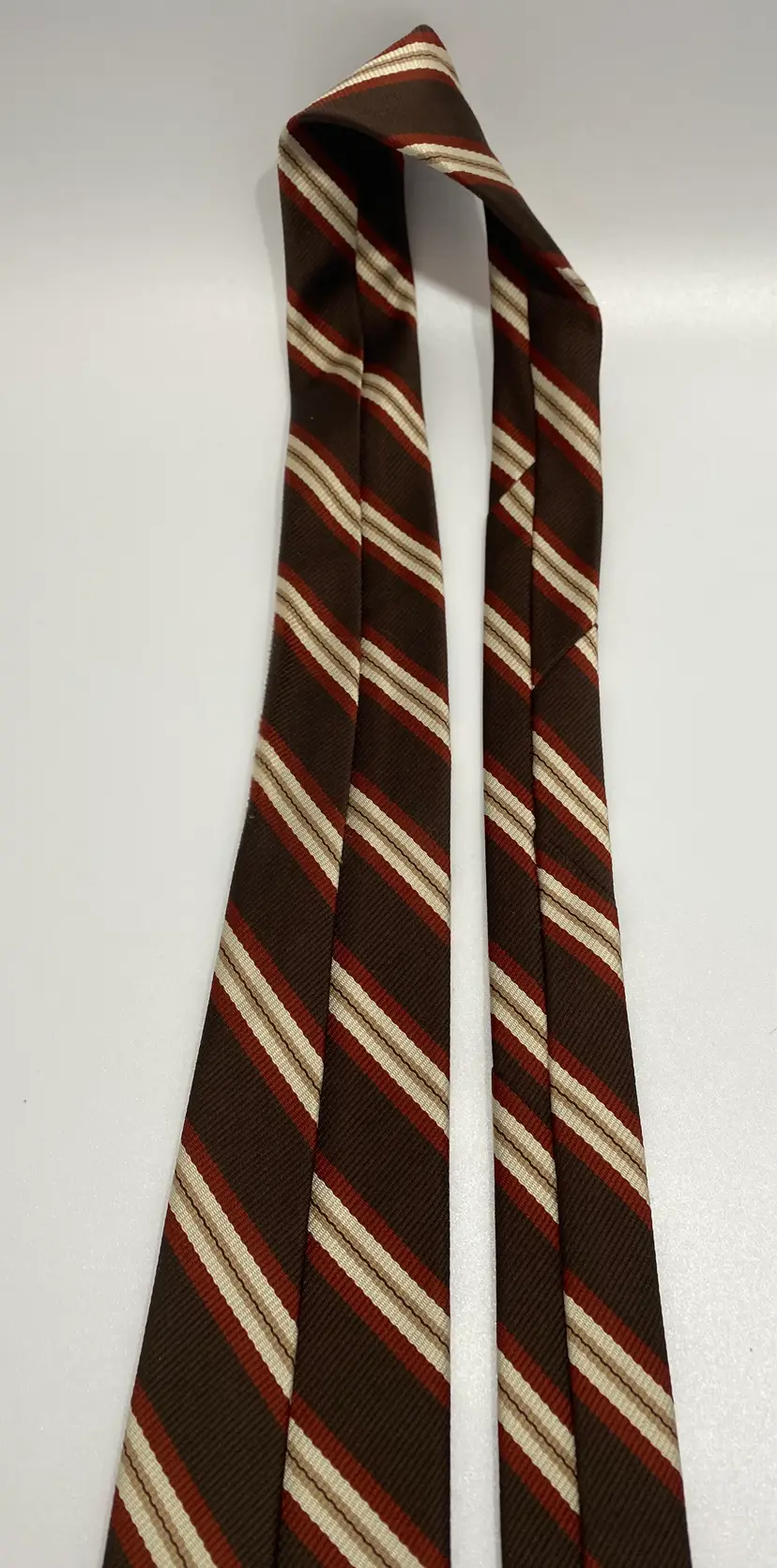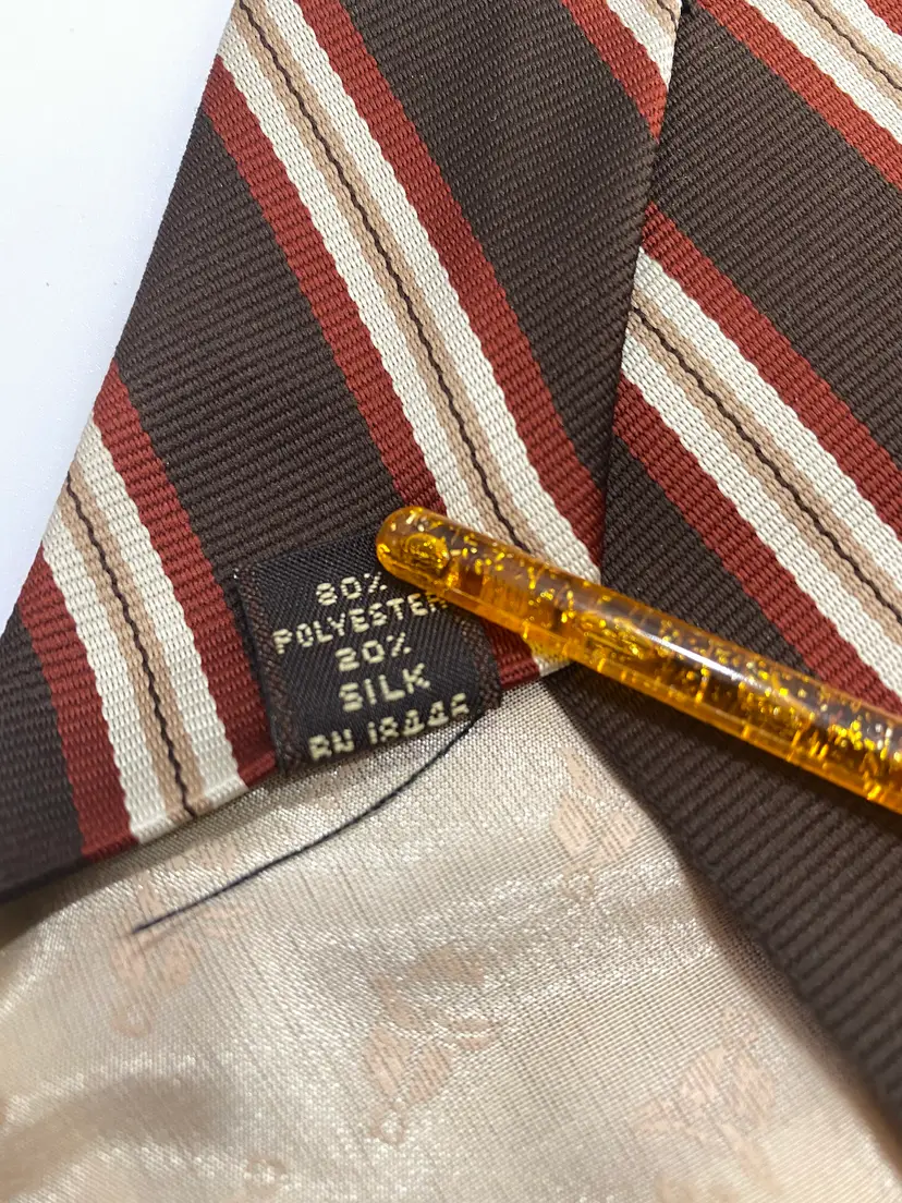 Ties will be looked over for major defects such as - large stains, loose threads, holes etc. and will be noted. Vintage ties could have wear due to use and age. Please enlarge all photos for overall condition and wear. So please expect pilling, stray threads etc that are not noted. They may have to be spot cleaned, pressed, labels may need to be sewn back on etc. Due to the differences in the lighting, fabric textures, and your computer settings, colors can differ slightly when received.