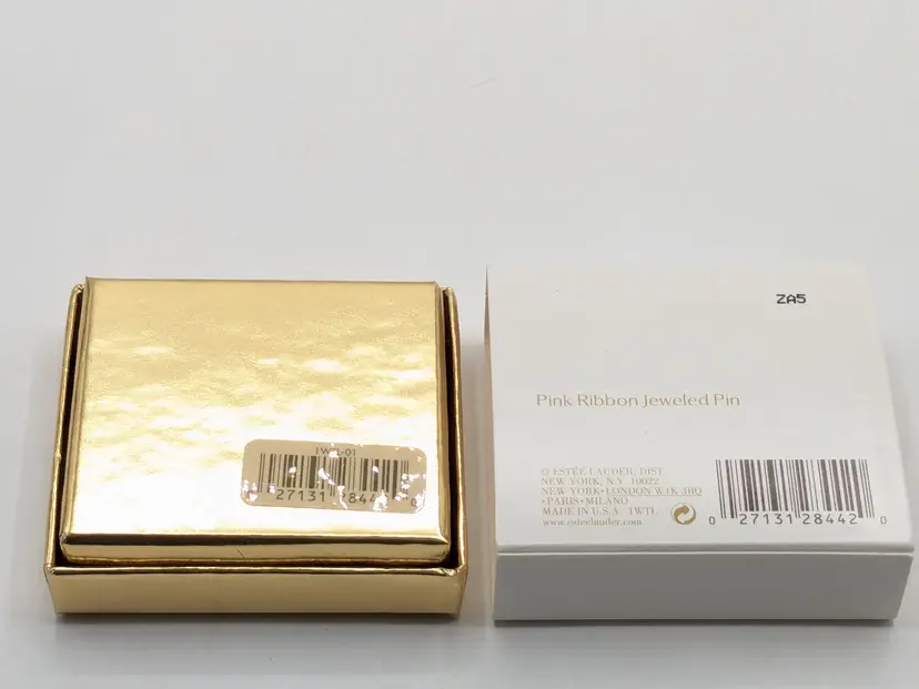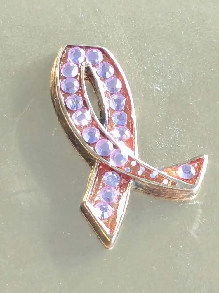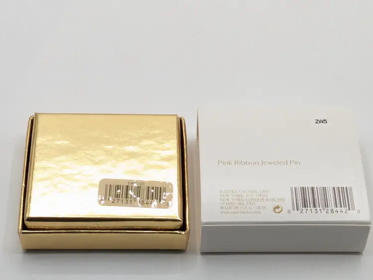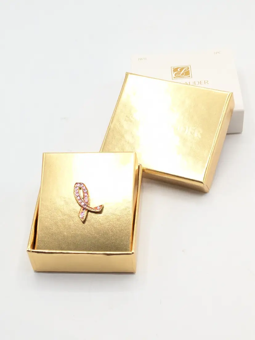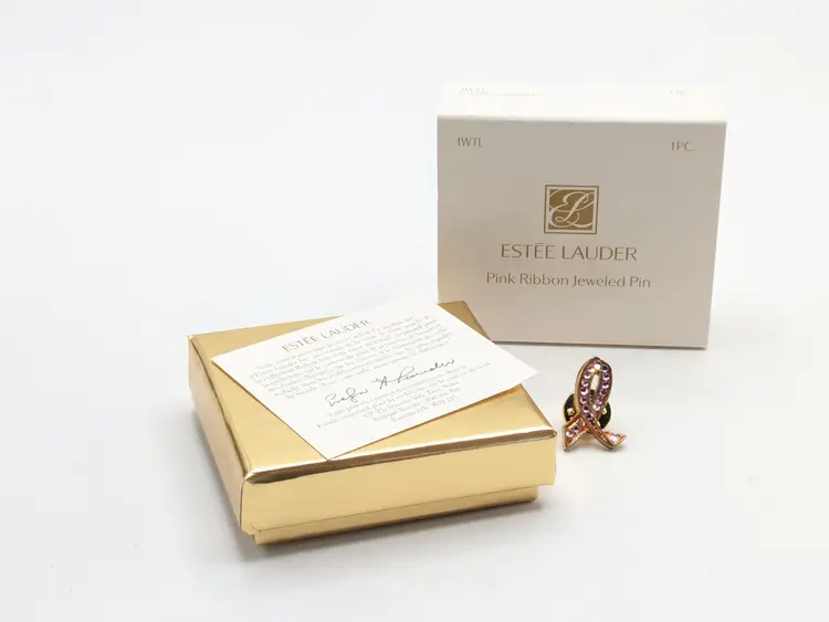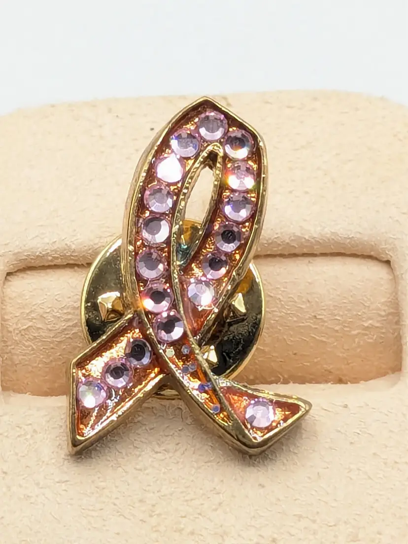 Good condition. New old stock. Breast cancer awareness pin. Measures 1" in length and 5/8" wide. Box included. EN3