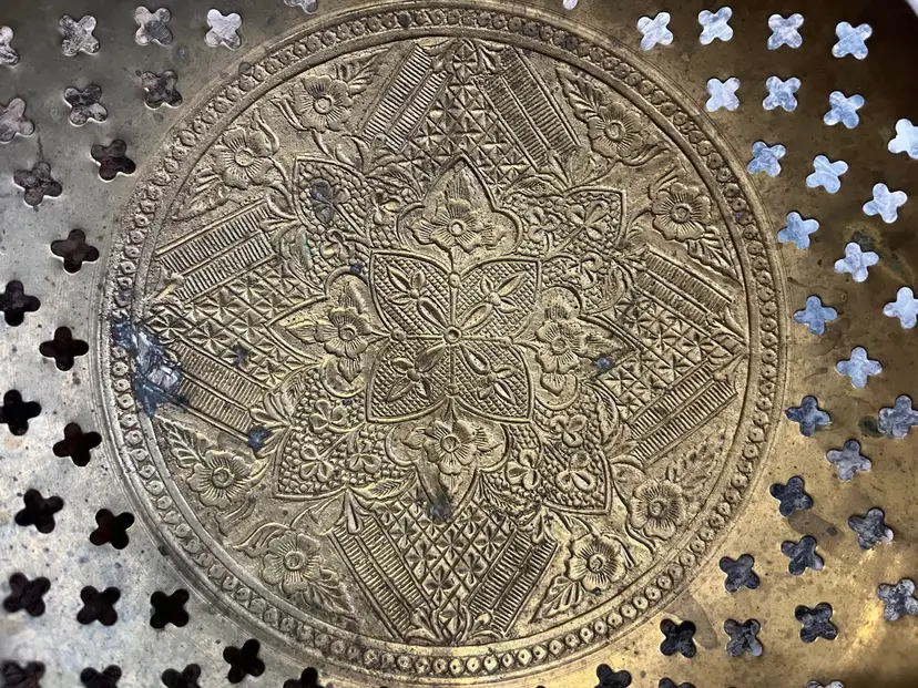 Brassware has a long and rich history across many cultures, particularly in South Asia, where it has been used for both functional and decorative purposes for centuries. Intricate metalworking techniques like repoussé (embossing from the reverse side) and etching allowed artisans to create detailed patterns on various vessels and decorative objects. These items often served as household decorations, religious artifacts, or serving dishes, reflecting the artistic traditions of their region of origin.