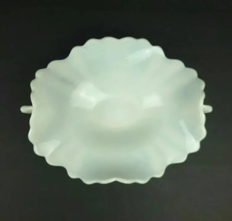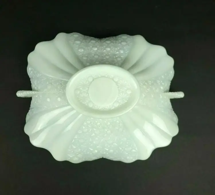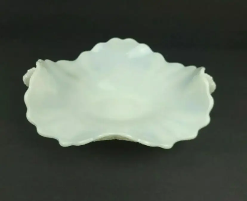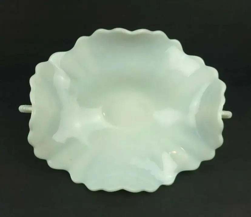 Vintage Fenton Milk Glass Daisy and Button Footed Bowl Ruffled Edge 2 White Daisy Handles 12.5"