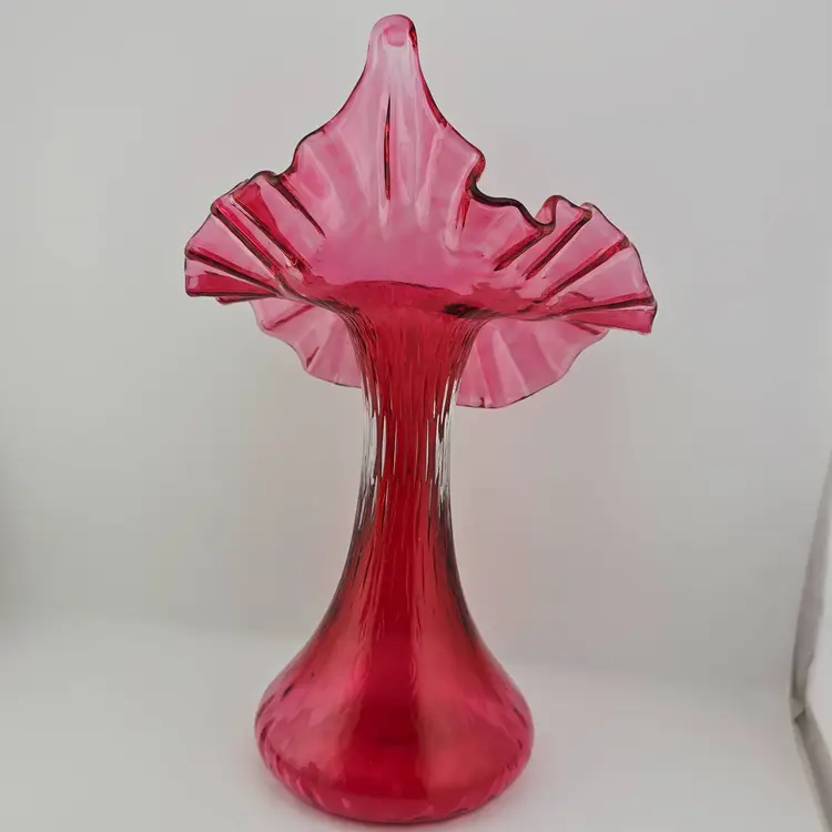 Vintage Fenton Ruffled Cranberry Jack in the Pulpit Glass Vase just under 11'