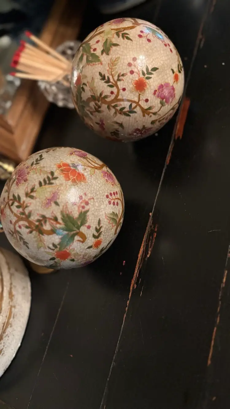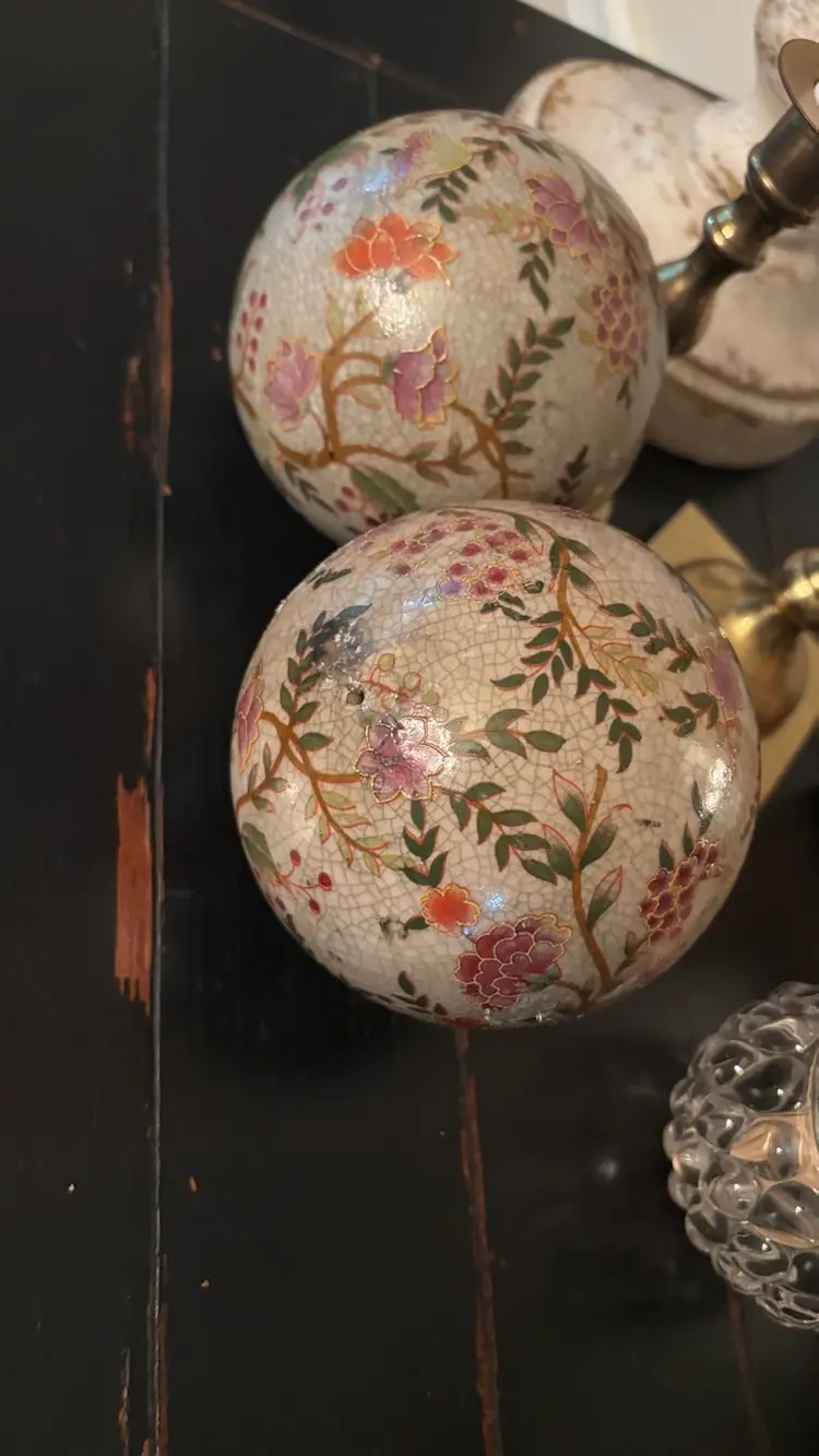 Neutral floral motif carpet balls. Very pretty and gorgeous with Fall decor.