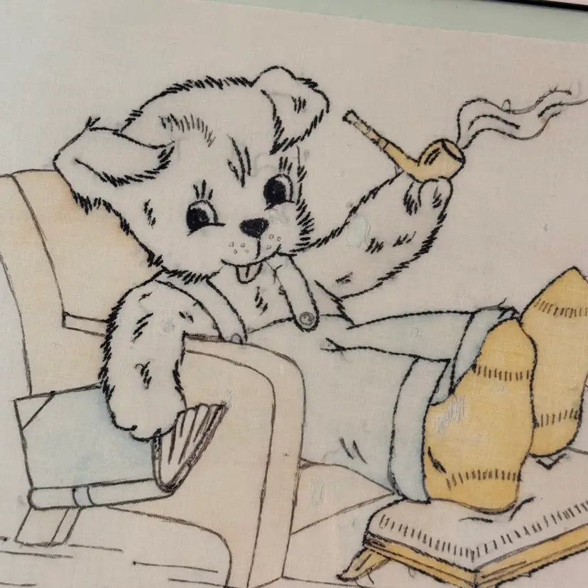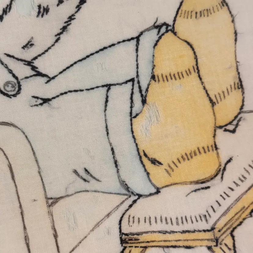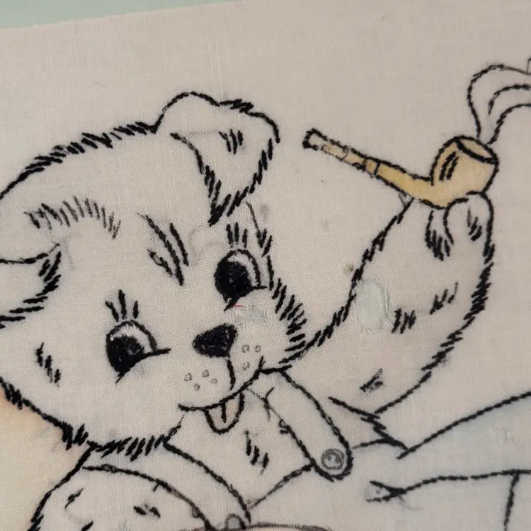 Framed piece of vintage embroidery. Some areas are drawn and some embroidered. A couple of worn spots as shown in photos. Can ship without frame if you prefer to reframe it.