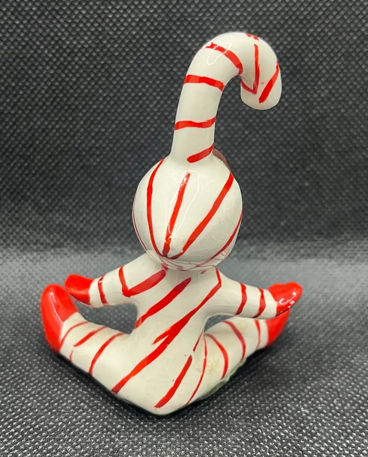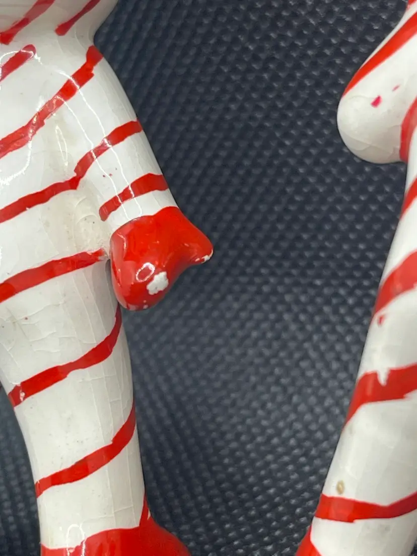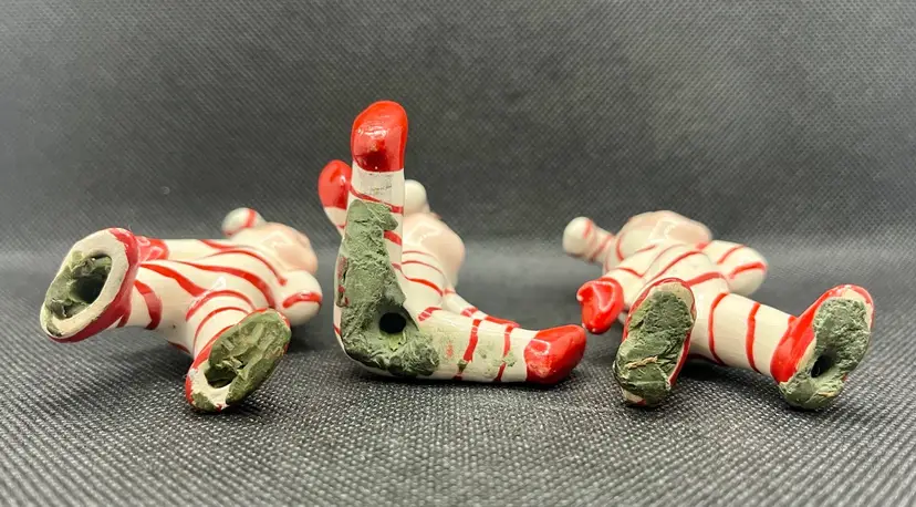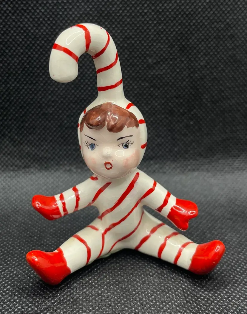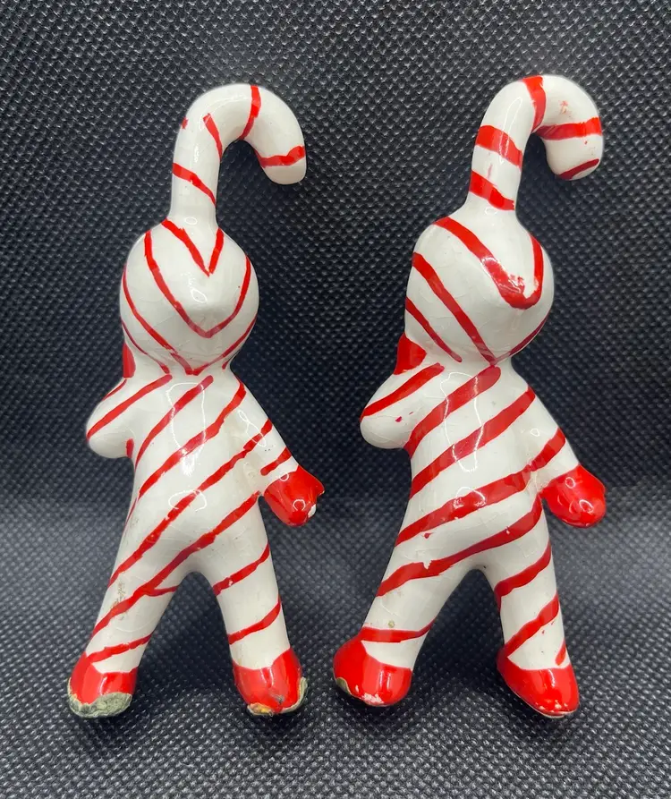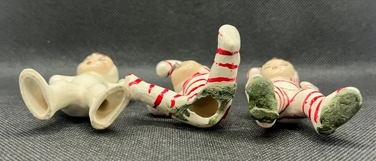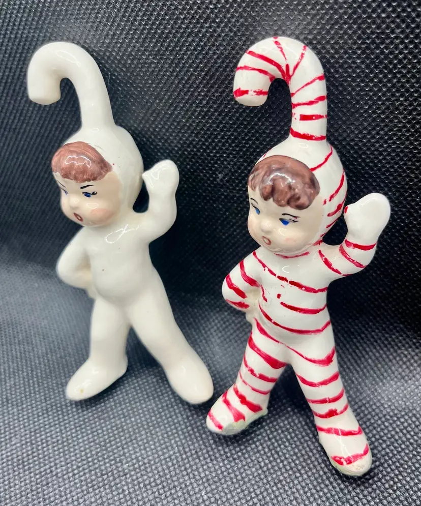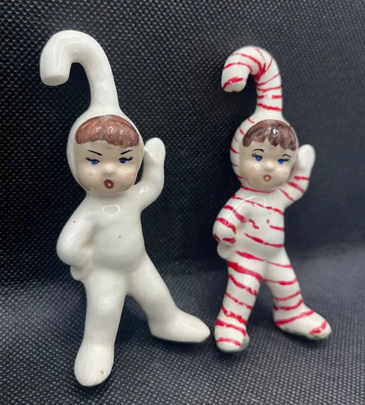Vintage Hand Painted Candy Cane Pixies Kids Christmas Figurines 1950’s Kitsch Set Of 3.