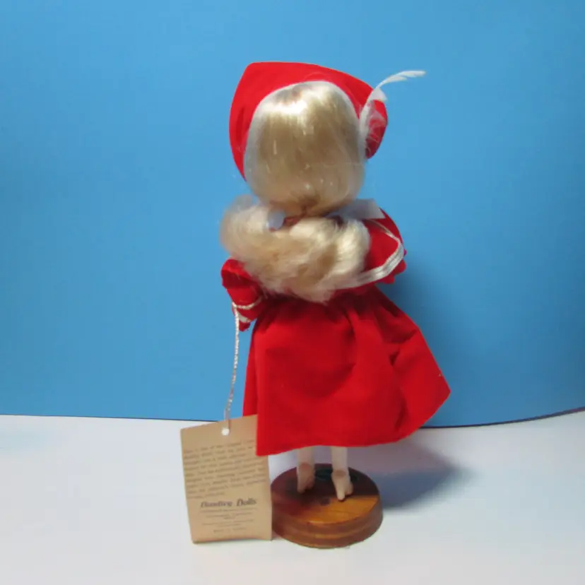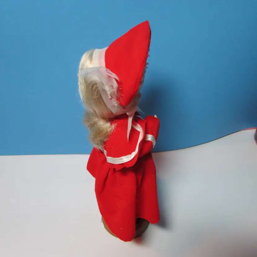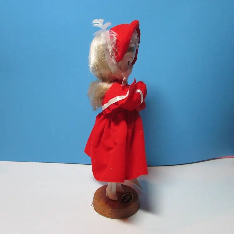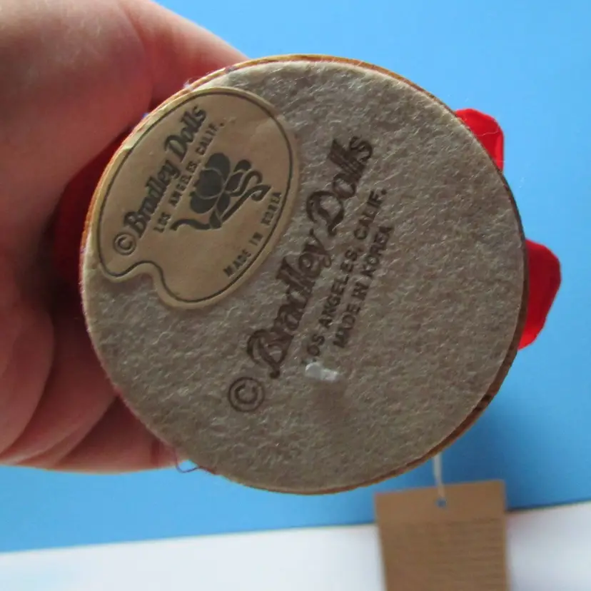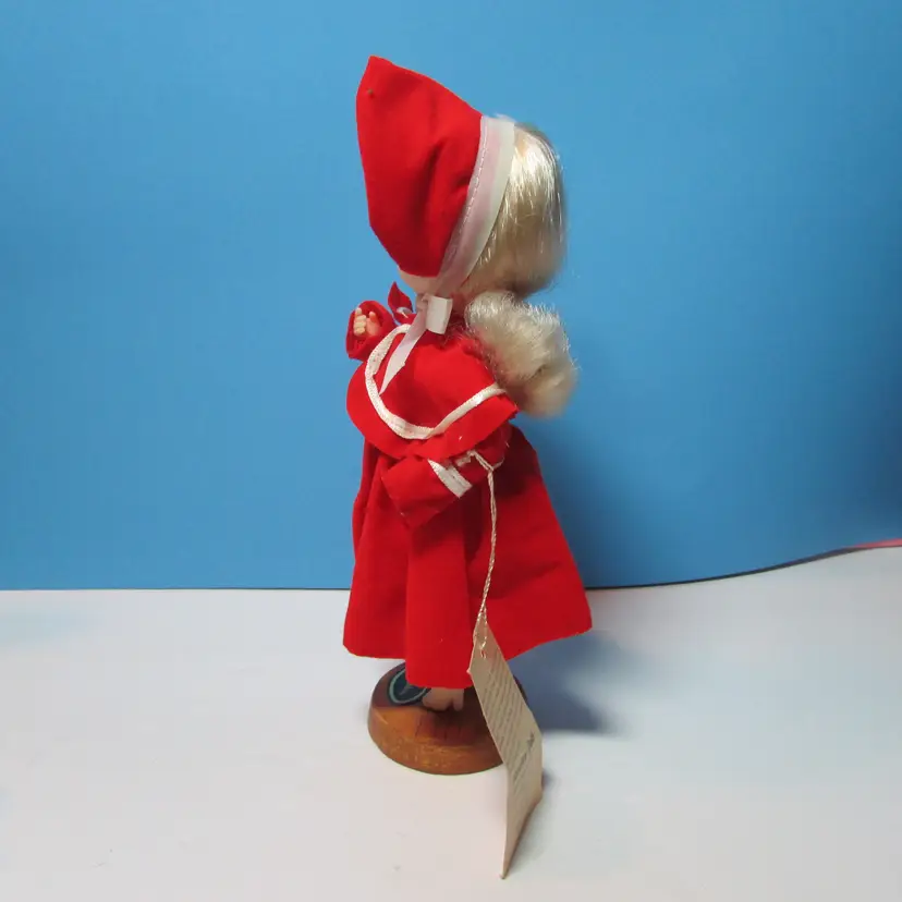 This adorable doll has some wear, she is about 8 1/2" tall. This is shipped from a smoke free home. Thanks for looking!