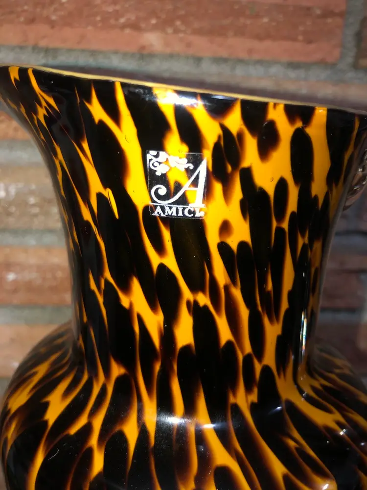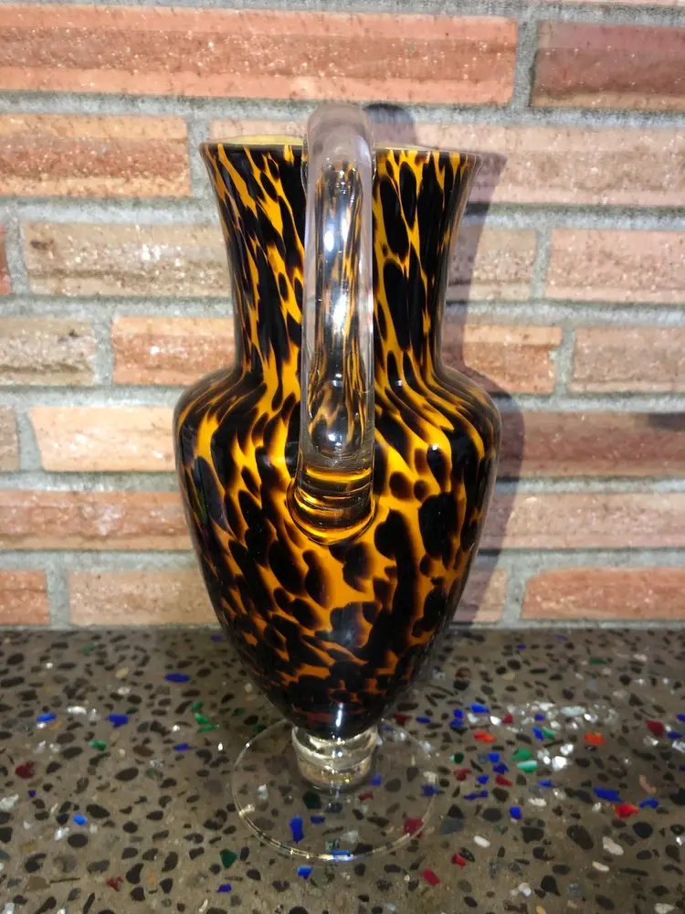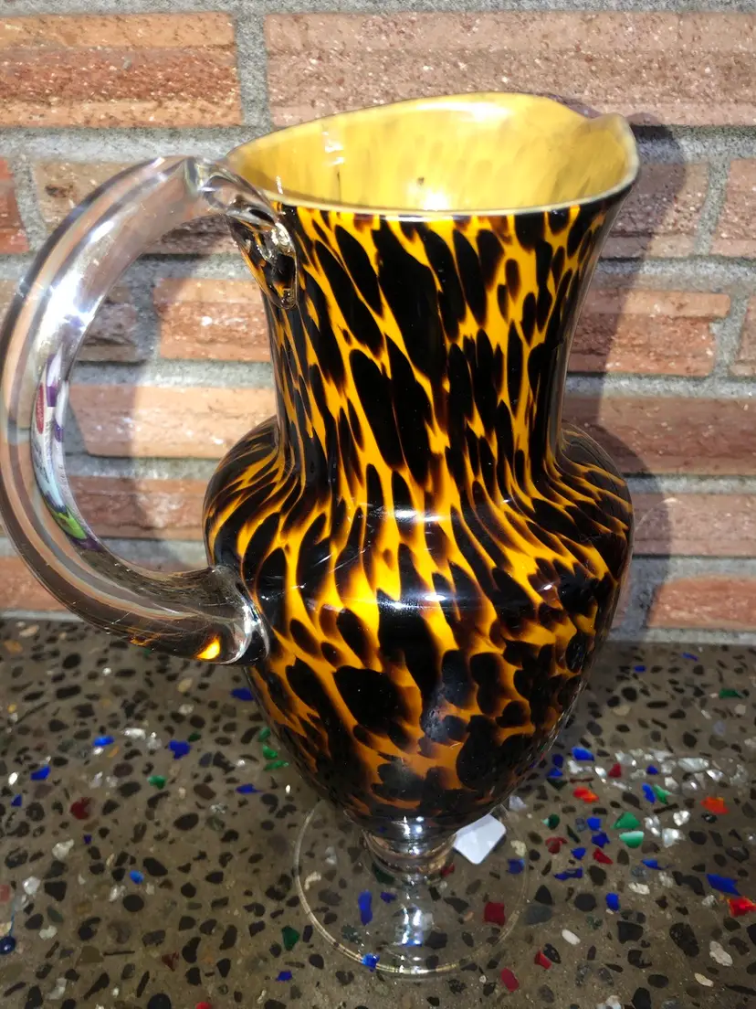 The Vintage Global Amici Safari Leopard Pattern Pitcher is a unique and stylish piece made of blown glass, featuring a striking leopard print pattern in multicolor. Handcrafted in Italy, this art deco style pitcher stands approximately 11" tall and is part of the safari product line by Amici. Perfect for adding a touch of animal print theme to your kitchen or dining space, this pitcher is a standout decorative piece that adds flair to your collection.