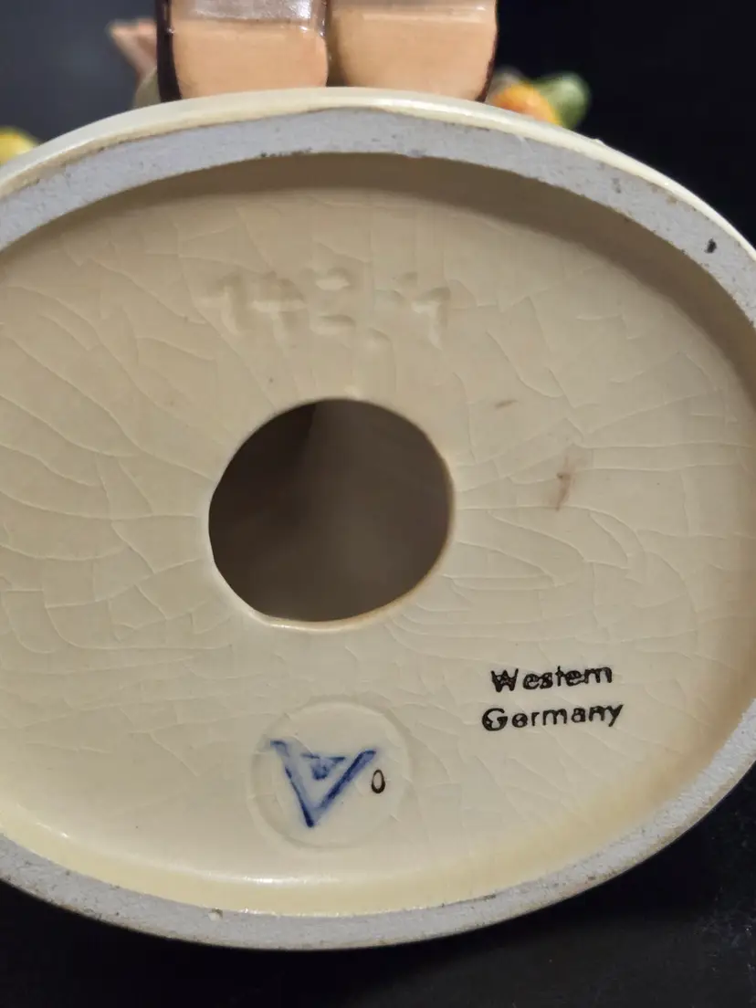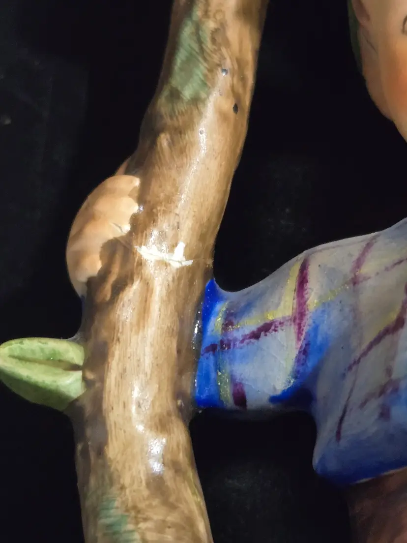 This vintage Goebel Hummel "Apple Tree Boy" represents a notable example of classic German porcelain figurine artistry. Measuring 6 inches in height by 3½ inches in width, the piece displays the refined craftsmanship Hummel is renowned for. Please note this collectible features repairs visible in the provided images, making it an excellent choice for collectors seeking authentic vintage pieces with character and history.
