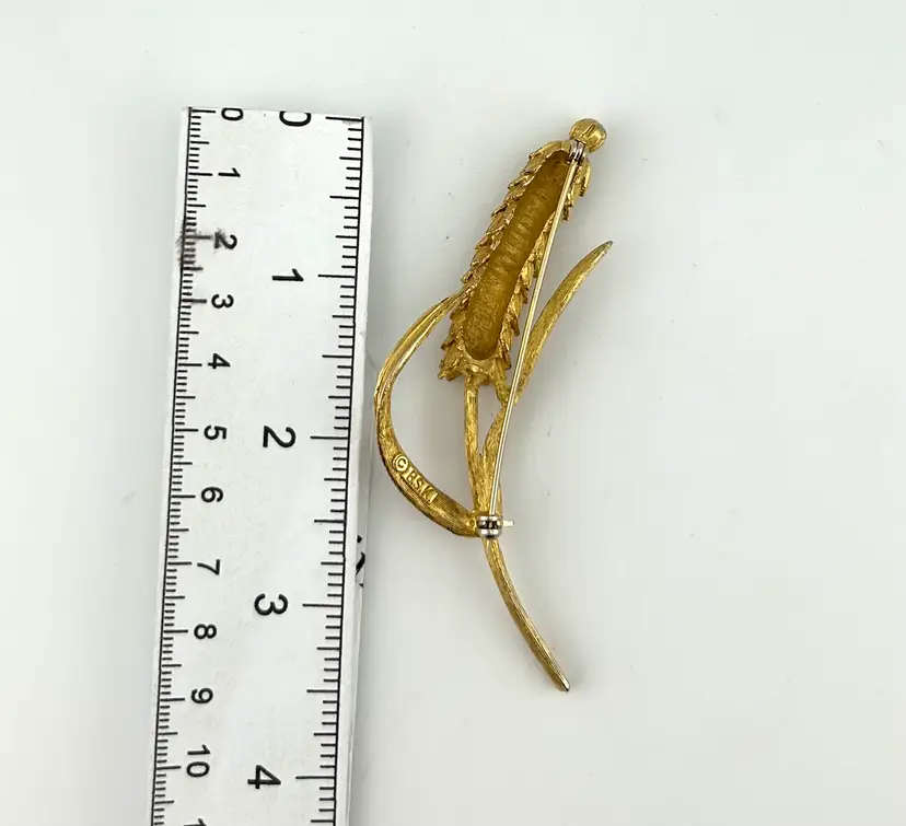 Vintage Gold Tone BSK Wheat Brooch 3.5”