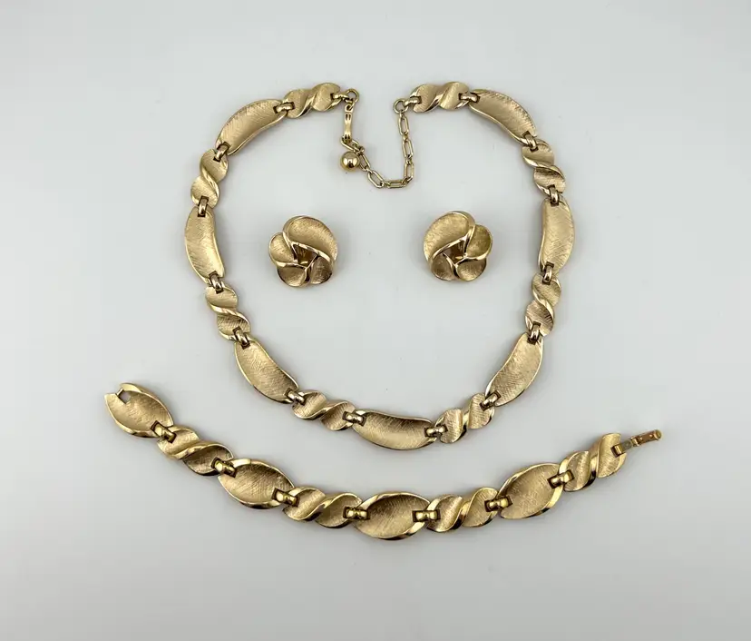 Necklace is 15” Bracelet is 7” Earrings are 1” Amazing condition!