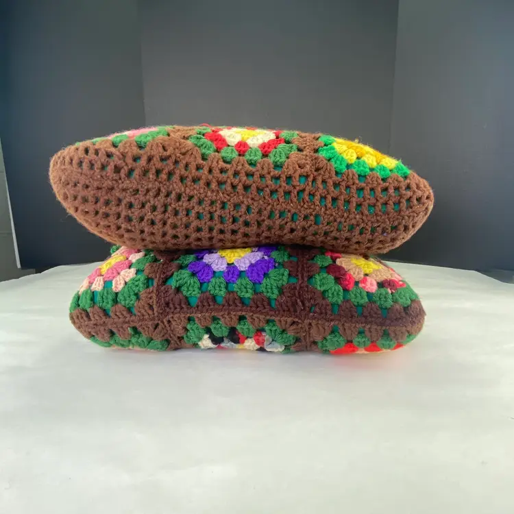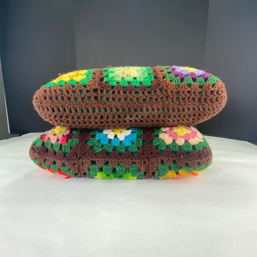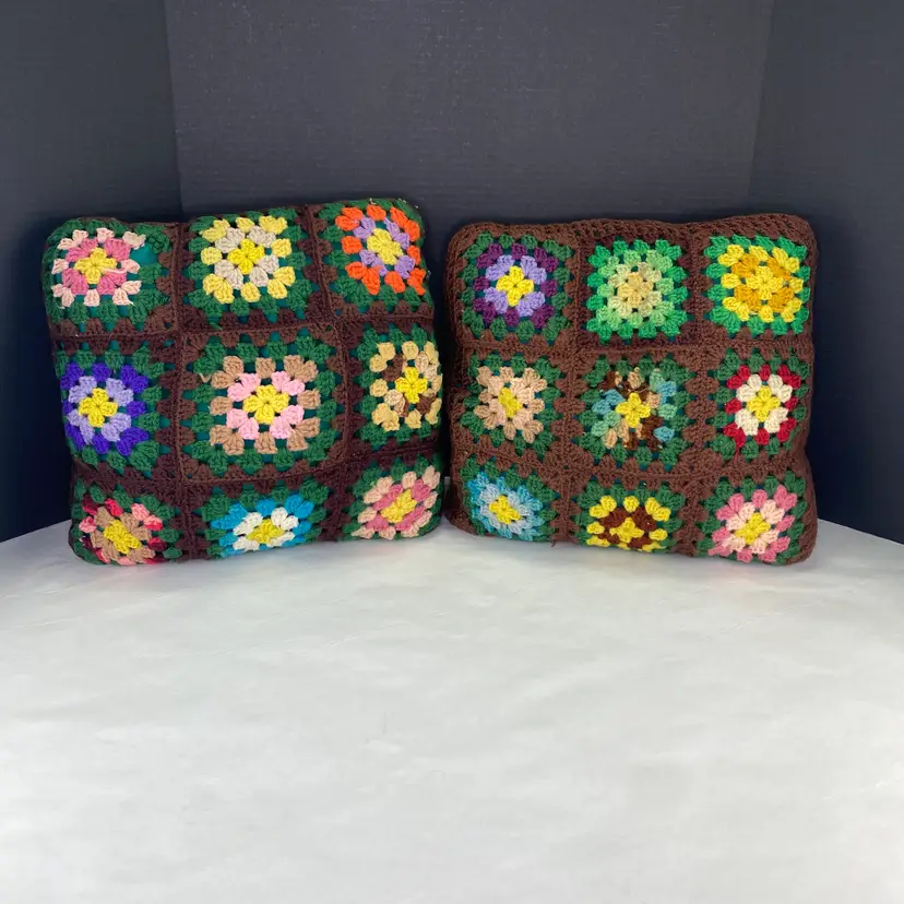 Vintage Granny Square Retro Accent Pillows Set of 2