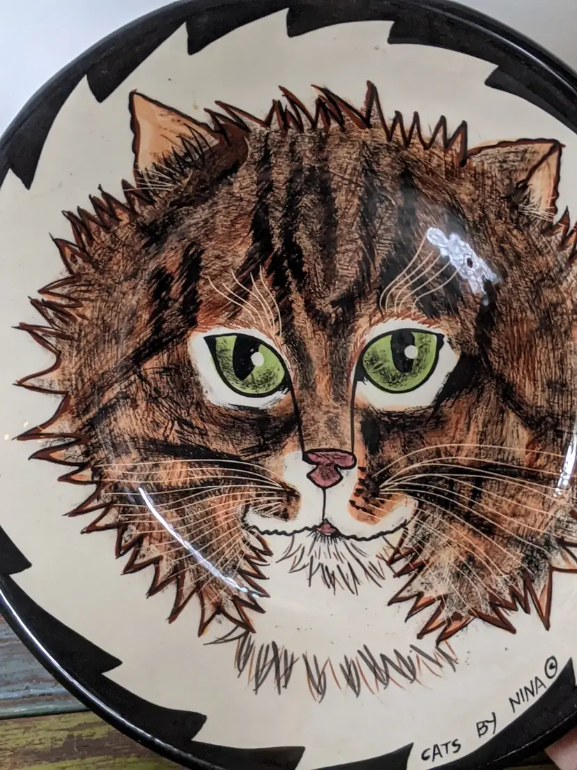 Tabby Cat Face dish, Great condition no chips or cracks. Signed by Artist