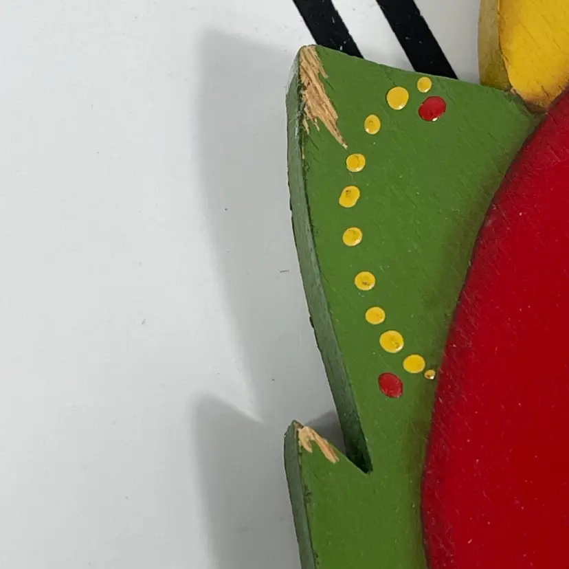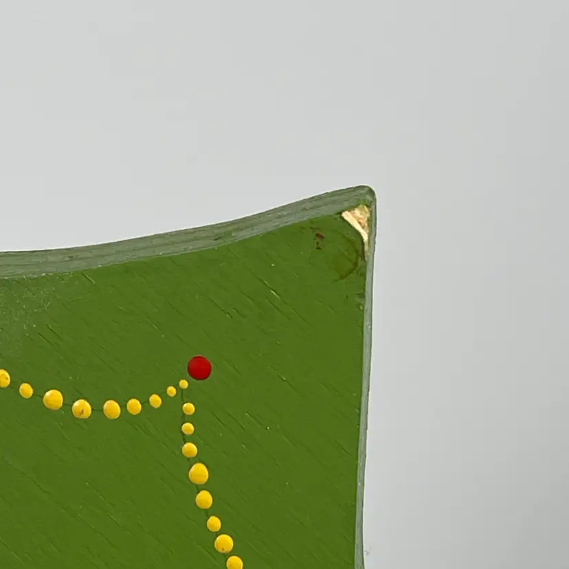 There is a small streak of paint across the candy cane and a small chip on the toe of one of the boots that has been touched up and small chips on the tips of the top and bottom on the Christmas tree. See photos.