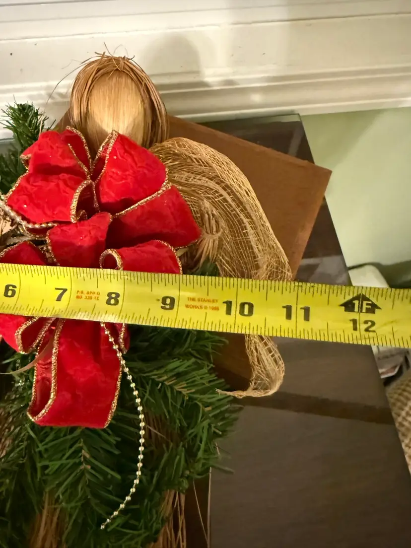 This vintage handmade raffia doll angel centerpiece is perfect for adding a rustic touch to your Christmas décor. Standing at 16.5 inches tall, this medium-sized Guardian Angel is crafted from brown raffia material with a lace pattern, exuding a charming and unique character perfect for the holiday season. The handmade nature of this item adds to its authenticity and appeal, making it a lovely addition to your Christmas tree or home.
