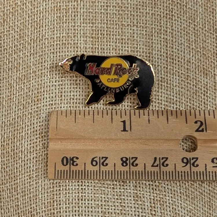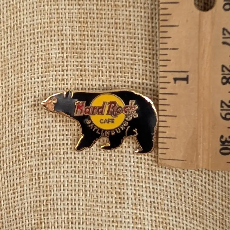 Cute, little enamel pin from the Gatlinburg Hard Rock Cafe of a walking black bear. In nice, used condition. Measurements ~ 1.25 x 0.75"