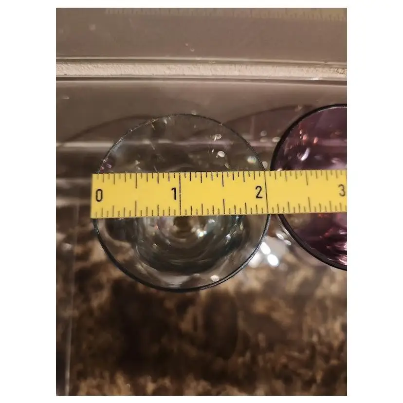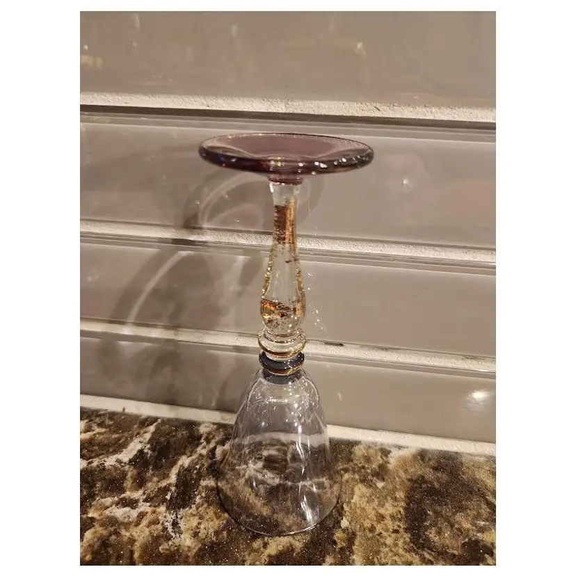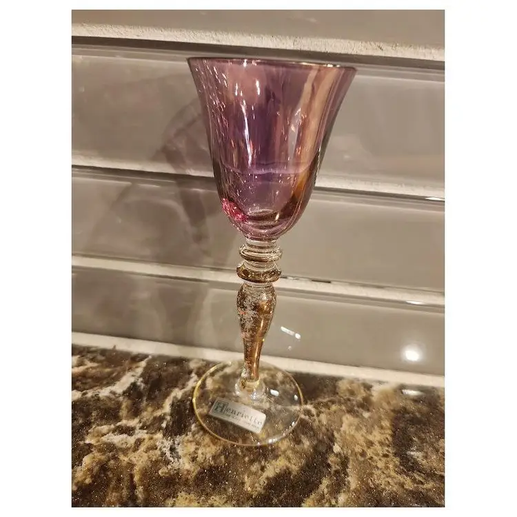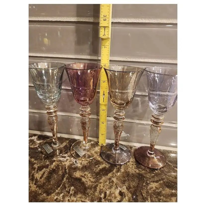 Elevate your dining experience with this stunning set of vintage iridescent wine glasses. Each glass features a unique hue and intricate stem design, perfect for adding a touch of elegance to any occasion.