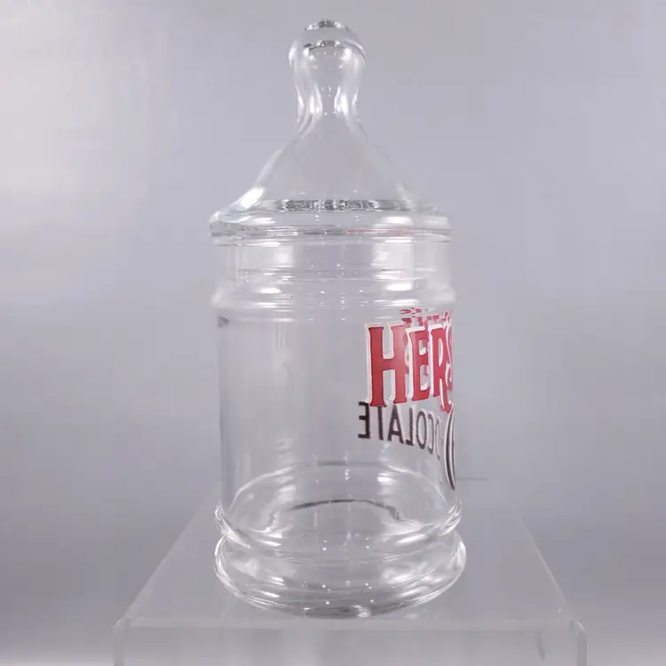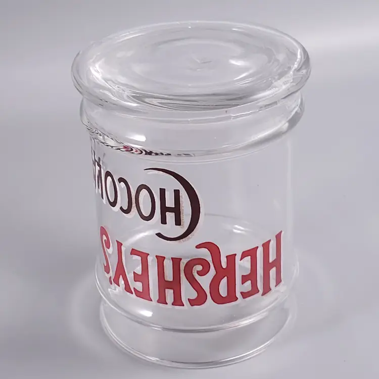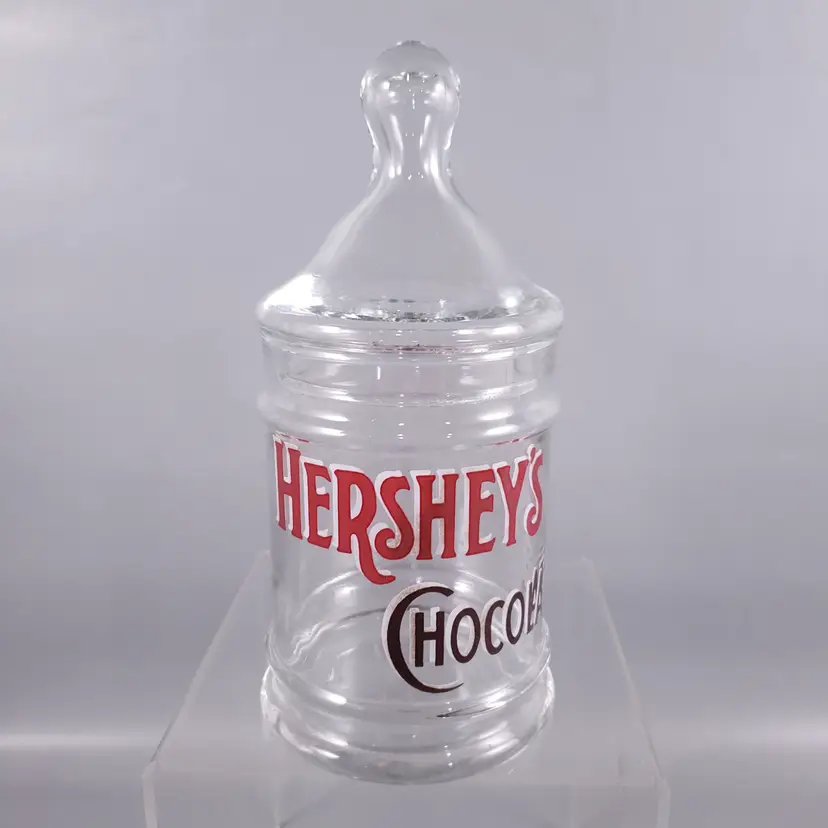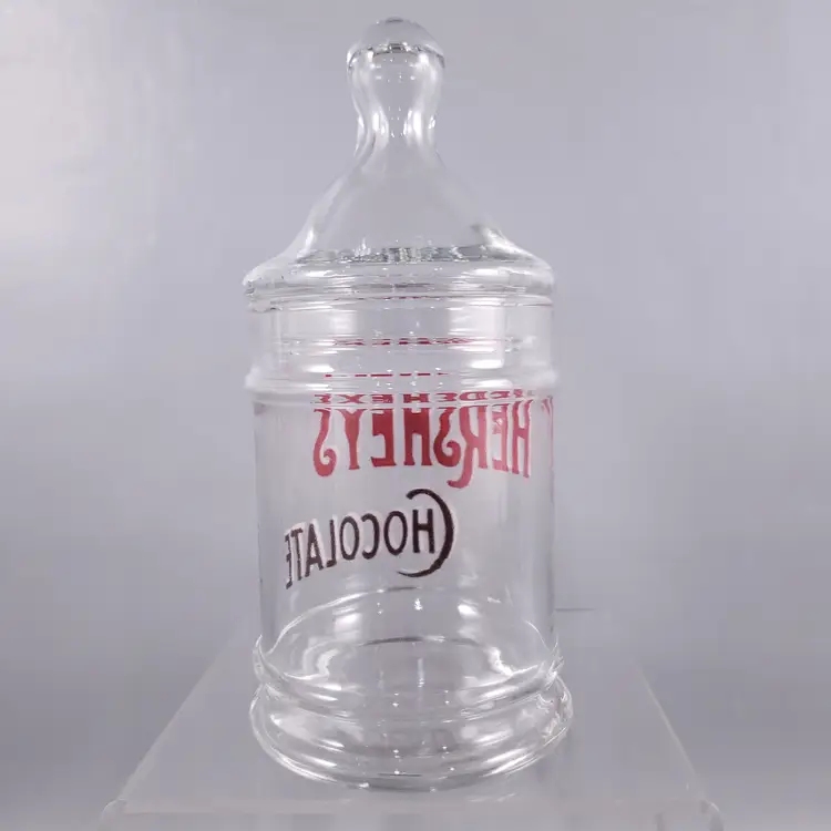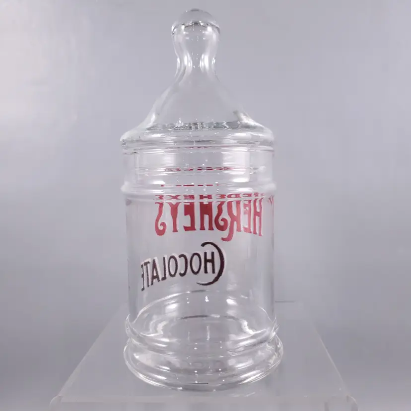 Vintage HERSHEY'S CHOCOLATE Anchor Hocking Clear Glass Advertising CANDY JAR