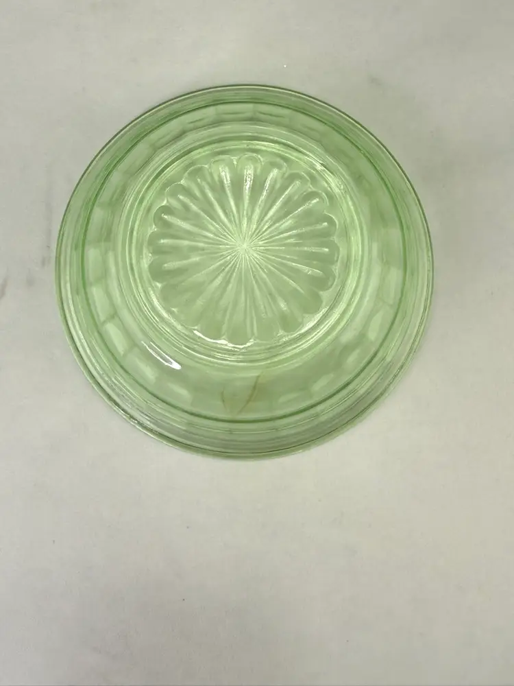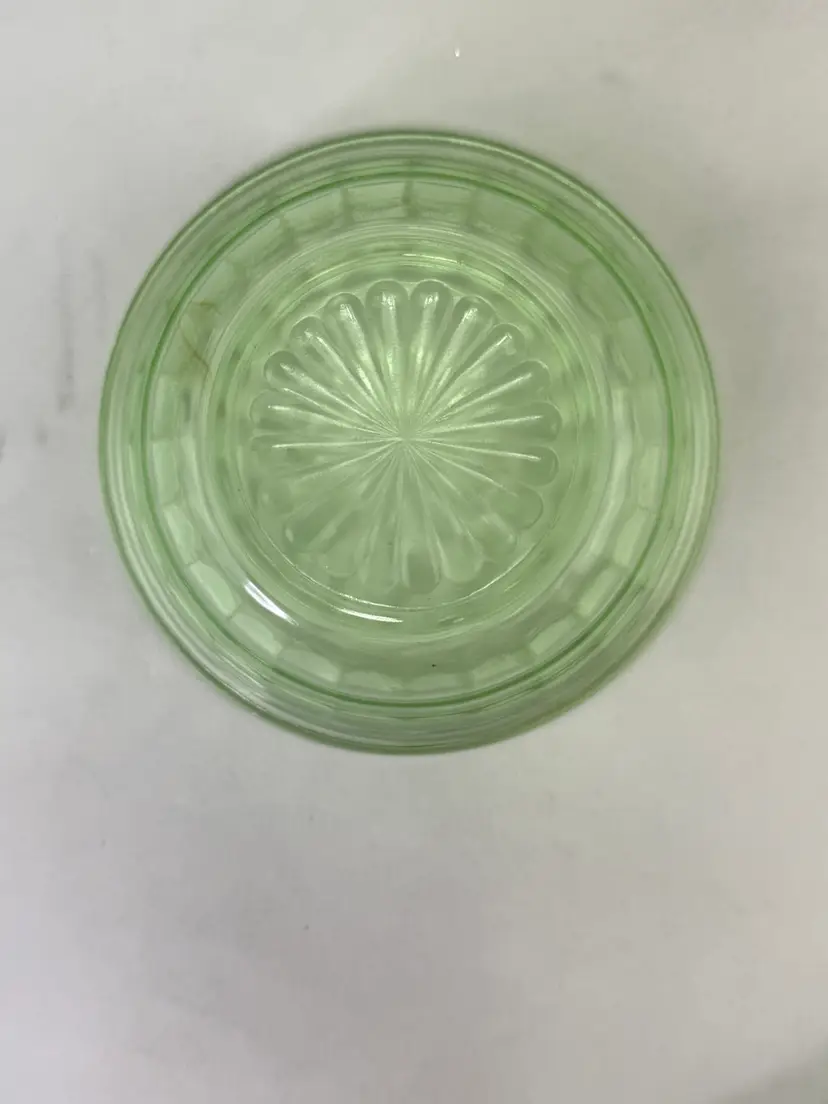 • Maker: Anchor Hocking Glass Co. • Pattern: Block Optic • Color: Green • Era: 1930–1934 • Size: Small berry bowl (approx. — 4 1/4 inches in diameter) • Excellent vintage condition – no chips or cracks but there is a light brownish swirl in the glass. It doesn’t affect functionality or is very noticeable, just may be a flaw from the batch it came from. Perfect for vintage lovers, collectors, or décor displays.