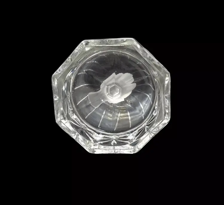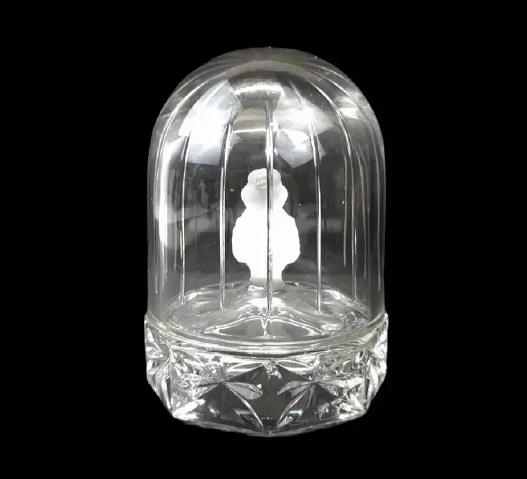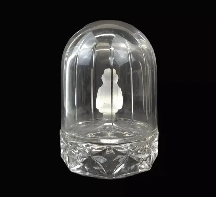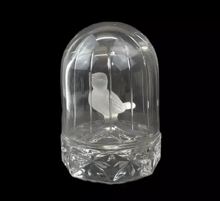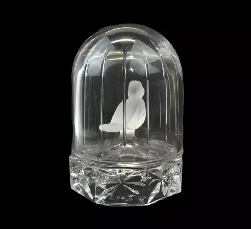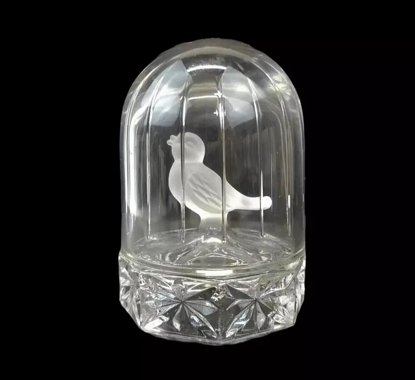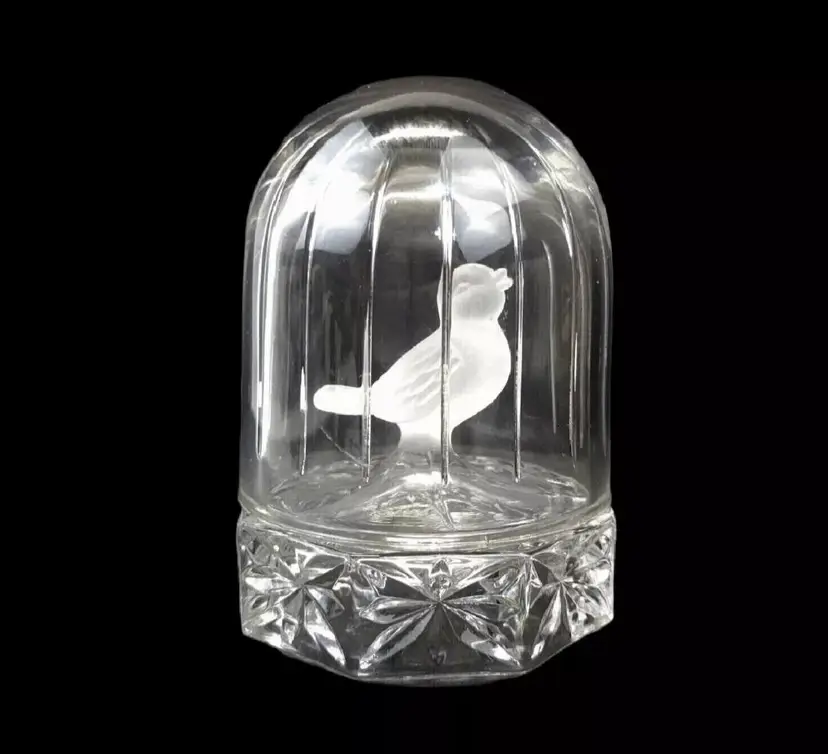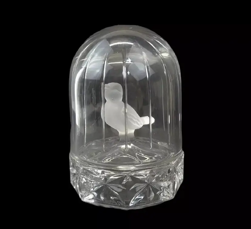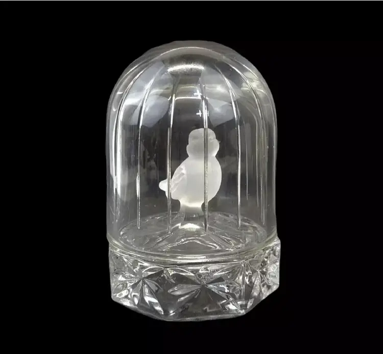 Vintage Frosted Satin Crystal Bird in Domed Lead Crystal Glass Cage.