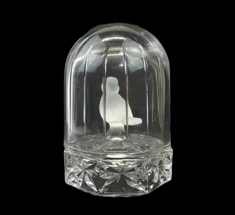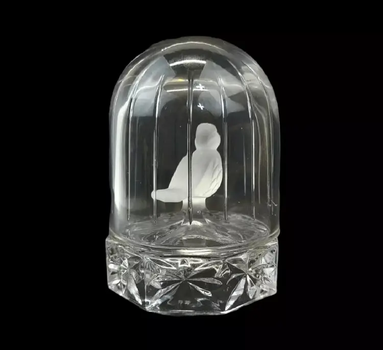 Vintage Hofbauer Byrdes Frosted Satin Crystal Bird in Domed Glass Cage Paperweight Germany