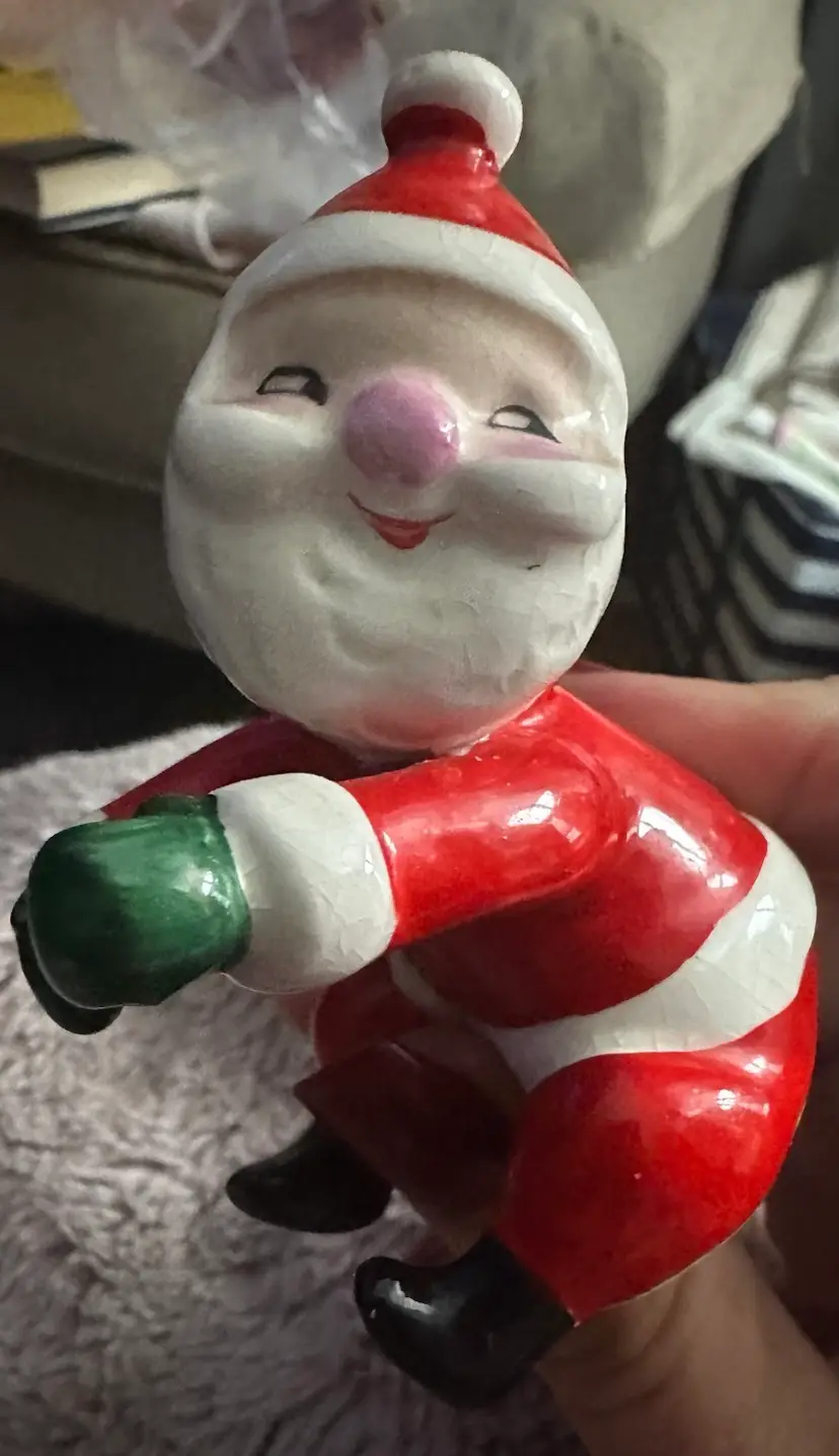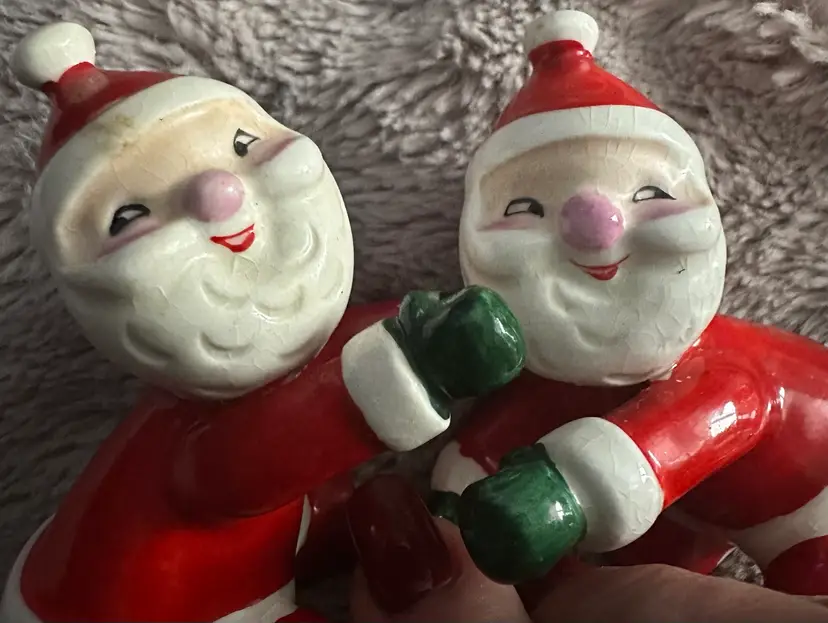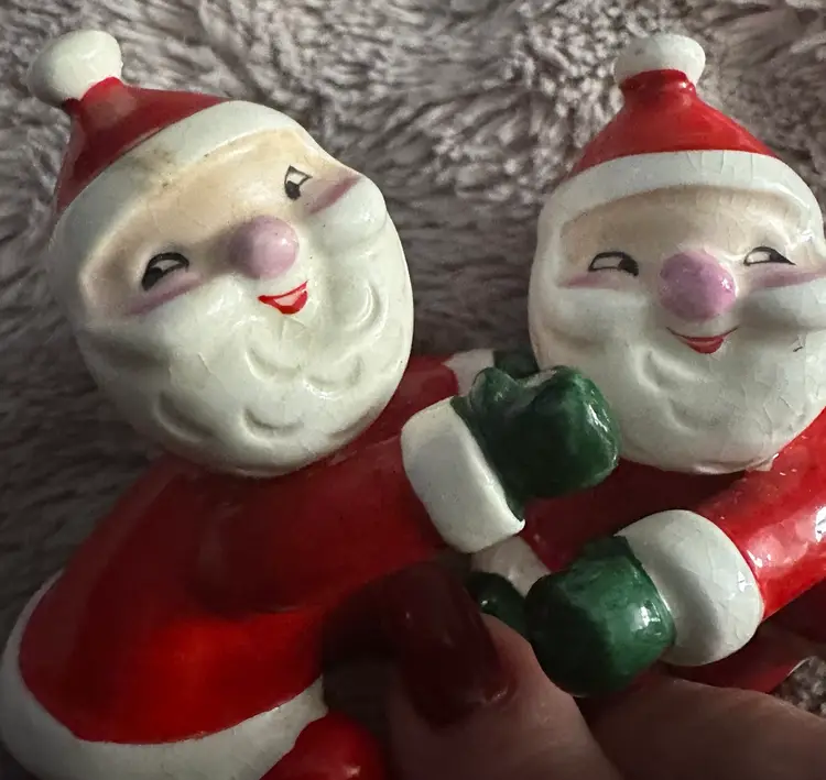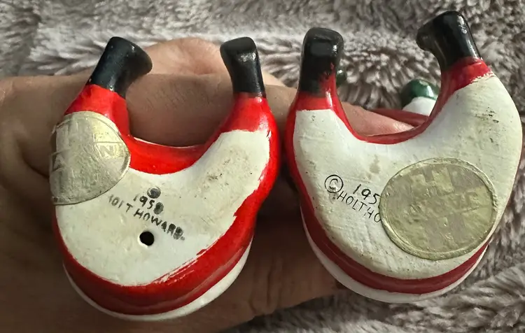 The Vintage Holt Howard Santa Claus Candle Hugger Holder Climber Pair is a charming set of ceramic figurines depicting Santa Claus in a playful and kitschy style. Made in 1958 in Japan during the Mid 20th Century, these red-colored candle climbers are a nostalgic addition to any Christmas decor collection. With their classic mid-century modernism design and original Holt Howard branding, these figurines capture the whimsical essence of the holiday season. Perfect for collectors of vintage holiday memorabilia, these Santa Claus candle hugger holders are a delightful touch to any festive decor setting.
