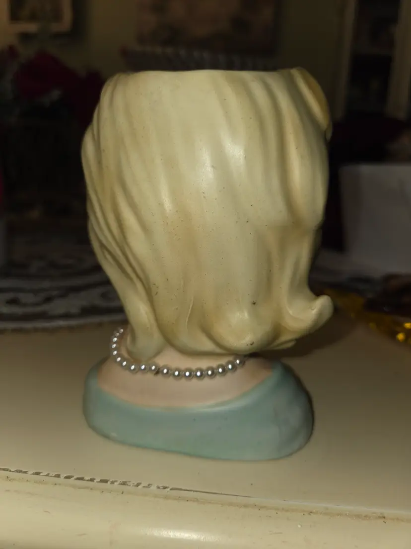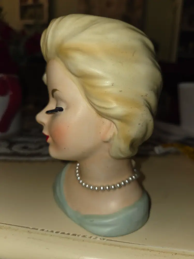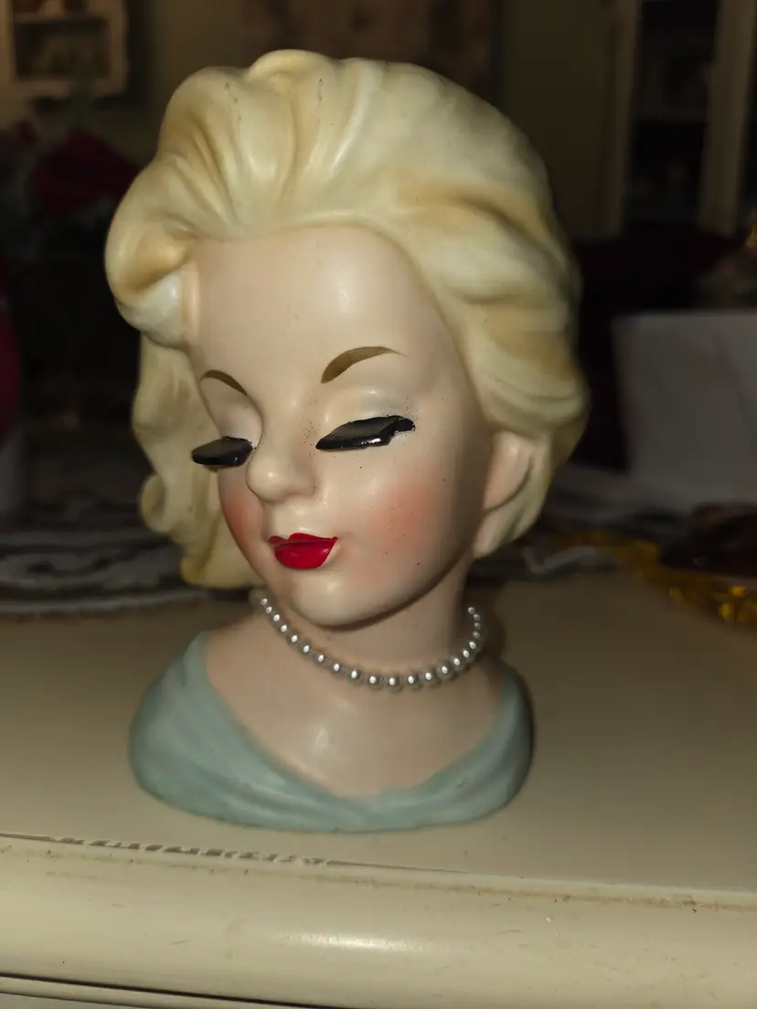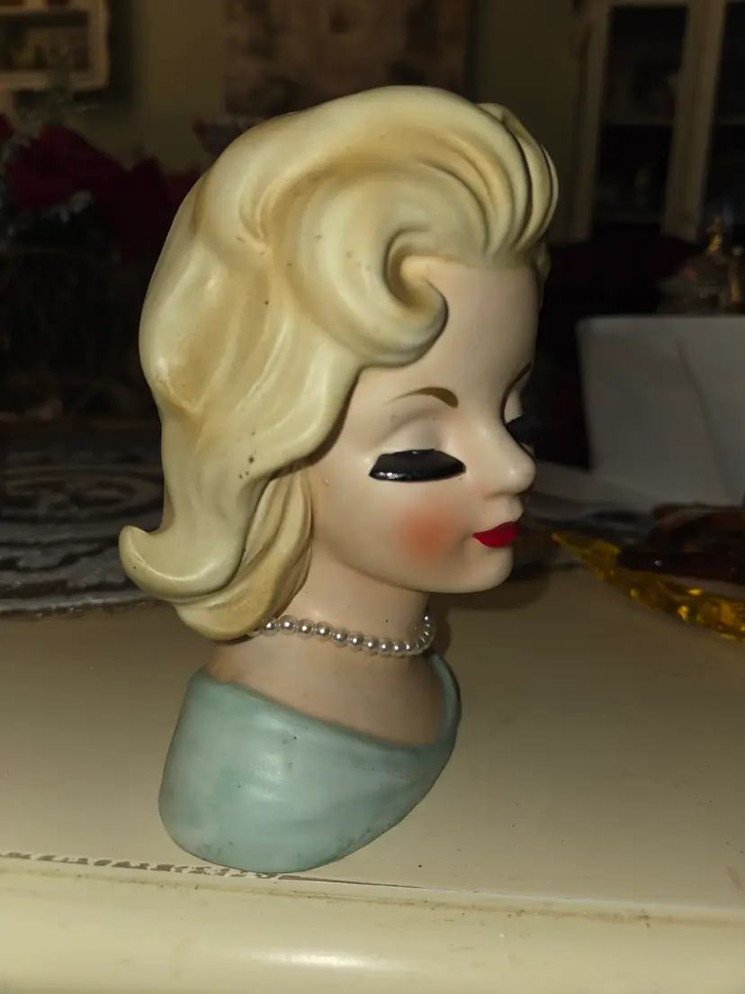 Pretty blonde lady with pearls head vase. Vintage by Inarco.